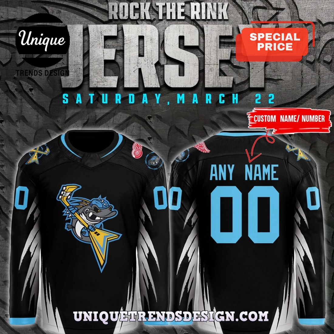 The 2025 Toledo Walleye x Rock the Rink Hockey Jersey brings together performance, comfort, and standout style. Designed for players and fans alike, it’s perfect for the ice, the stands, or the streets – making it a must-have piece in your collection.