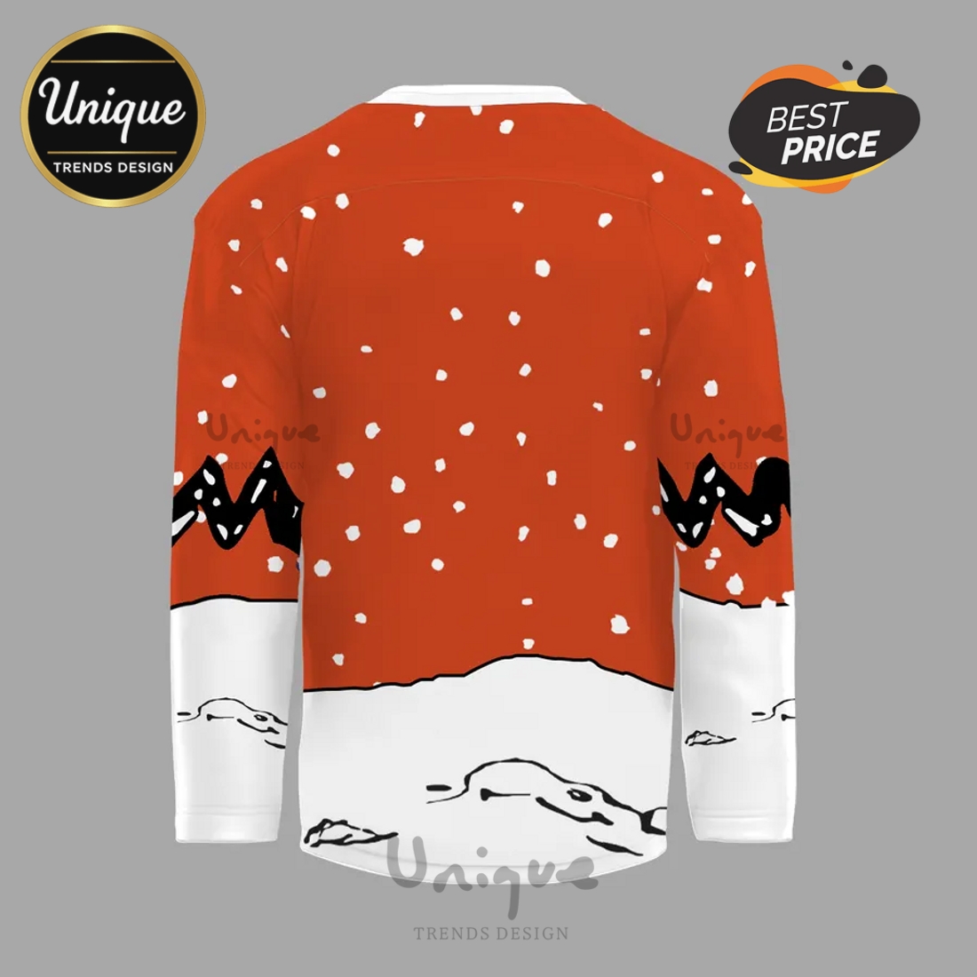 Beyond its captivating visual design, the jersey is constructed with the quality expected of an authentic or high-grade replica hockey garment. Fashioned from durable, breathable, and moisture-wicking polyester knit fabric, it’s engineered for comfort whether worn during an intense game day, a casual outing, or as part of a collector’s display. Reinforced stitching throughout, particularly at the seams and around embellishments, ensures longevity, while a performance-inspired fit offers a comfortable drape without being overly restrictive. The neckline, likely a V-neck or a classic rounded style, will provide optimal comfort, and some versions might even include a fight strap, traditionally found on authentic player jerseys, adding to its genuine feel. The tactile experience of the premium fabrics and the intricate detailing of the design elements, from the team crest to the Snoopy graphics, will immediately convey its superior craftsmanship. This isn’t merely a graphic tee; it’s a meticulously fabricated piece of apparel designed to withstand regular wear while maintaining its aesthetic integrity.