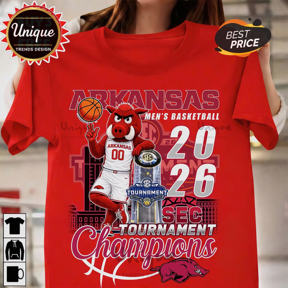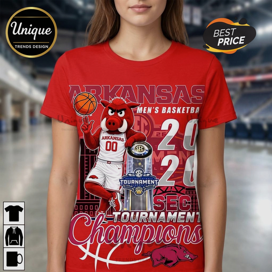 Epic Fanatic GearArkansas Razorbacks 2026 SEC Tournament Champions Graphic T-Shirt