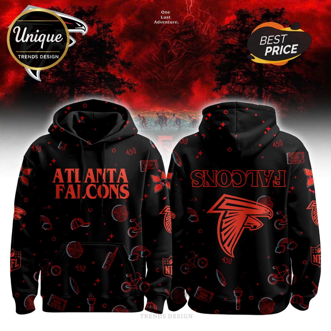 This hoodie meets the needs of several customer profiles. For the dedicated Falcons fan, it’s an opportunity to express team loyalty in an extraordinarily unique and conversation-starting way, transcending basic merchandise. It’s ideal for those who appreciate exclusivity and collector’s items, given the nature of cross-brand collaborations. For fans of – Stranger Things- , it offers a stylish and subtle way to showcase their affection for the series, even if they aren’t die-hard football enthusiasts – the design intrigue crosses over. Ultimately, for anyone seeking a high-quality, comfortable, and eye-catching hoodie that merges their passions for sport and pop culture, this product delivers. It’s more than just clothing; it’s a statement, a badge of unique fandom, and a reliable source of warmth and comfort, making it an invaluable addition to any wardrobe.