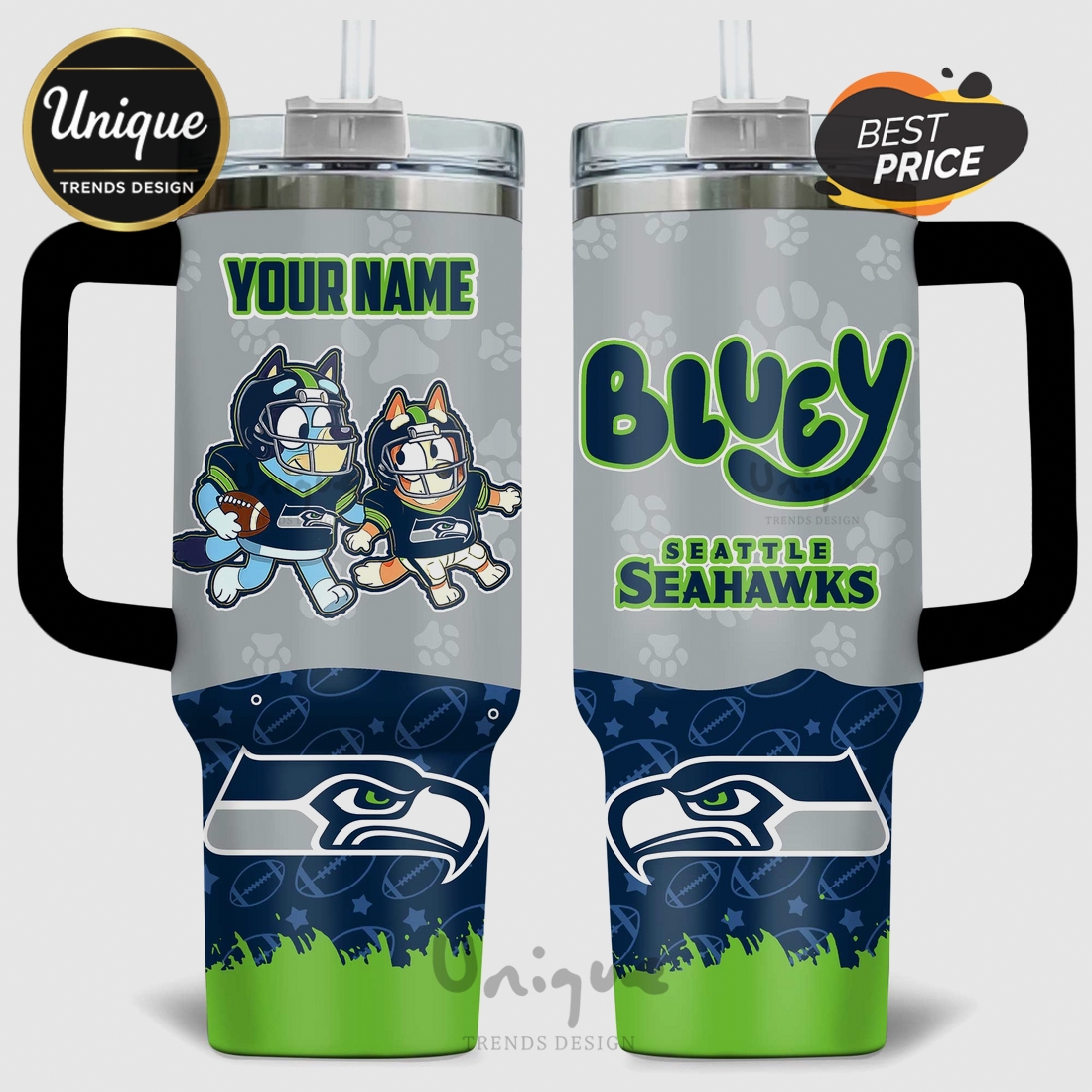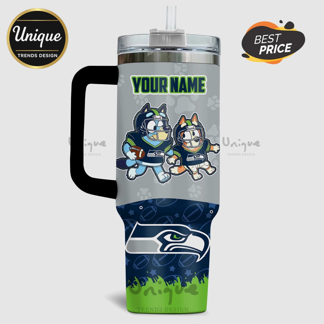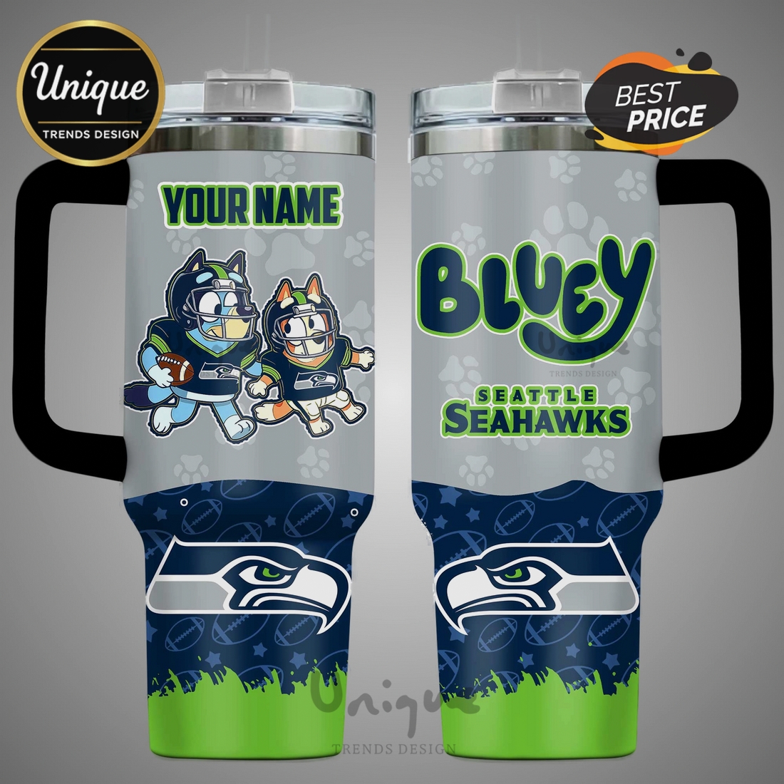 Epic Fanatic GearBluey Seattle Seahawks NFL Personalized 40oz Tumbler