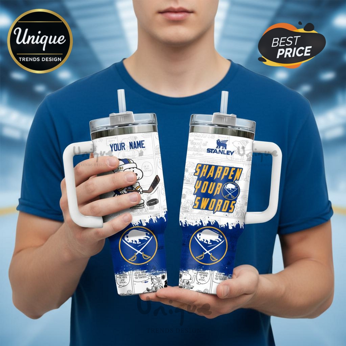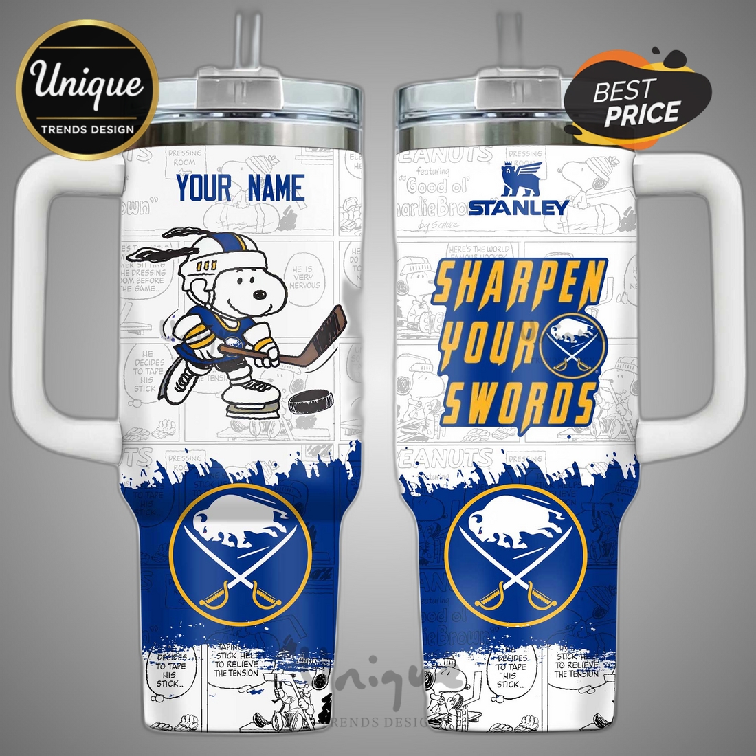 The tumbler’s visually striking design is where its unique personality truly shines, artfully combining the vibrant Buffalo Sabres colors and iconic team logo with the universally cherished Peanuts character, Snoopy, humorously depicted in full hockey gear—skates, stick, and a Sabres jersey. This whimsical yet spirited fusion creates a truly unique aesthetic that is instantly recognizable and a guaranteed conversation starter, allowing fans to express their loyalty in an engaging and lighthearted manner that traditional merchandise often misses. Beyond its appealing design, the personalization option elevates this tumbler from a mere functional item to a cherished keepsake; the ability to add a name, initials, or even a lucky jersey number transforms it into a unique declaration of individual fandom or an incredibly personal token of affection when given as a gift. This customization is applied with high-quality engraving or printing, ensuring the longevity of your custom detail even with frequent use and washing. Functionality is further enhanced by a secure, spill-resistant lid, designed for practical, on-the-go use, paired with a convenient reusable straw that promotes sustainable habits by reducing reliance on single-use plastics.