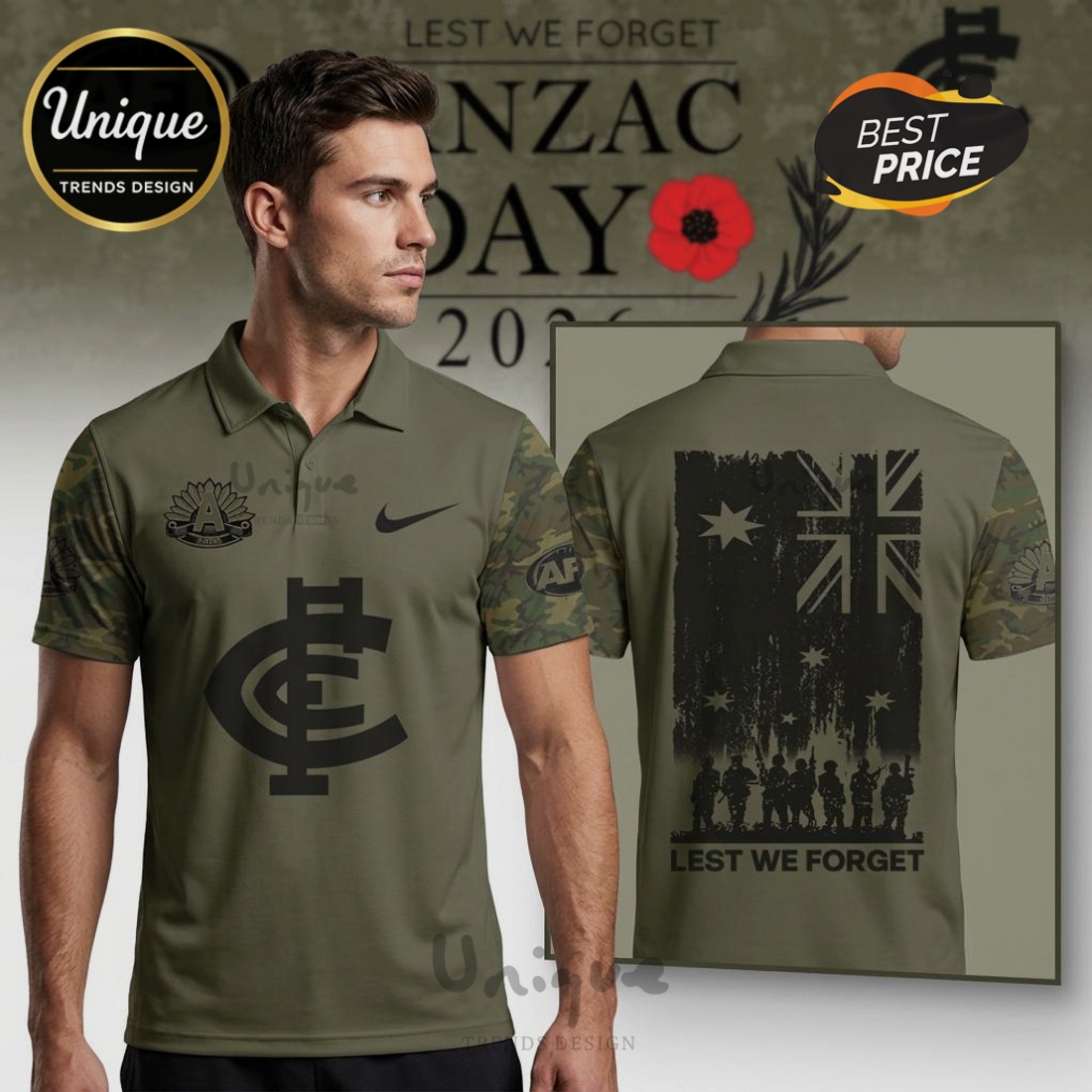 Carlton Blues ANZAC Day 2026 Limited Edition Graphic Polo Details