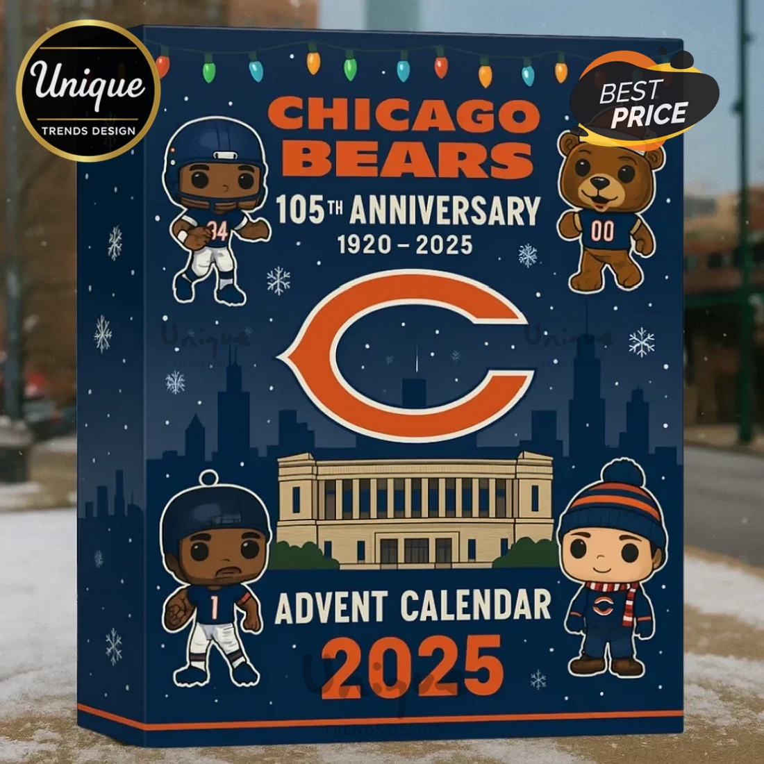 This special Chicago Bears 105th Anniversary Advent Calendar presents an unparalleled opportunity for fans to celebrate their beloved team throughout the holiday season, or simply as a unique daily countdown leading up to a significant event or the culmination of the football season. It’s not merely a collection of items, but a carefully curated experience designed to ignite and sustain team spirit, offering a daily dose of excitement and a tangible connection to one of the NFL’s most storied franchises. The calendar itself is thoughtfully designed, typically featuring the iconic Chicago Bears navy blue and orange color scheme, prominently displaying the team’s classic “C” logo, and specifically highlighting the “105th Anniversary” branding, signifying its commemorative and potentially limited-edition nature. Its robust construction suggests durability, ensuring it can withstand the daily ritual of opening a new door without easily tearing, and the visual aesthetic makes it an attractive piece of décor for any fan’s home, office, or fan cave during the celebratory period.
