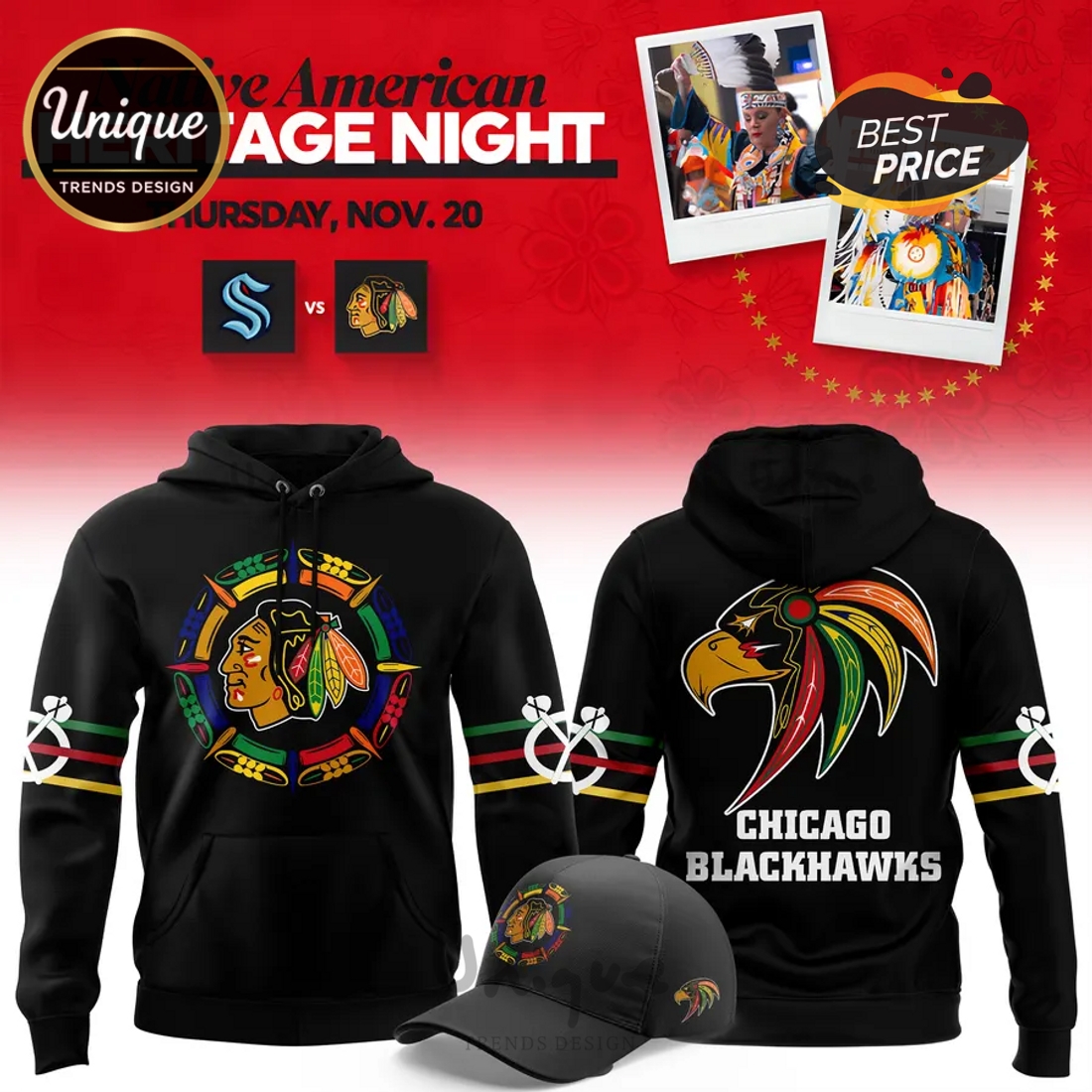 Chicago Blackhawks 2025 Native American Heritage Night Hoodie, Cap Information