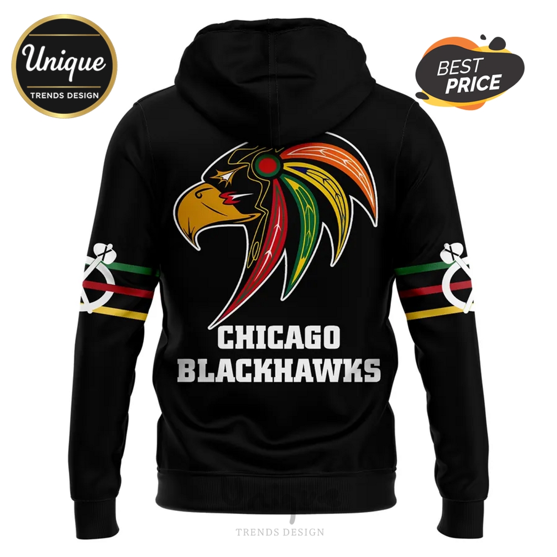 For potential customers, this collection meets several key needs. Blackhawks fans gain an exclusive, high-quality item that expresses their loyalty in a unique and impactful way, differentiating it from common merchandise. Collectors will appreciate its limited-edition nature and the significance of the event it commemorates, making it a valuable addition to any sports or cultural memorabilia collection. Individuals seeking comfortable, durable, and stylish apparel for everyday wear will find the premium materials and thoughtful construction more than satisfactory. Moreover, buyers who are passionate about cultural awareness and respectful representation can proudly wear this set, knowing it contributes to a broader conversation and, implicitly, supports initiatives related to Native American heritage. It’s a perfect gift for the devoted fan, the style-conscious individual, or anyone who values items that carry a story and purpose beyond their immediate function.