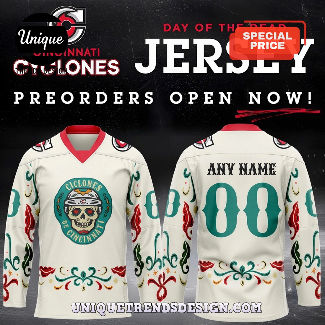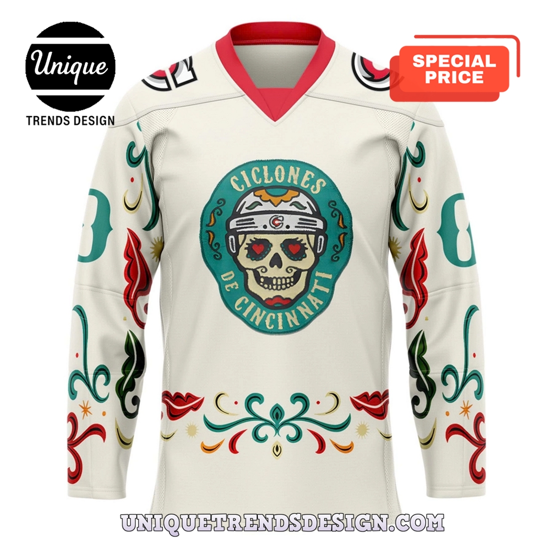 The Cincinnati Cyclones x Day of the Dead 2025 Hockey Jersey brings together performance, comfort, and standout style. Designed for players and fans alike, it’s perfect for the ice, the stands, or the streets – making it a must-have piece in your collection.