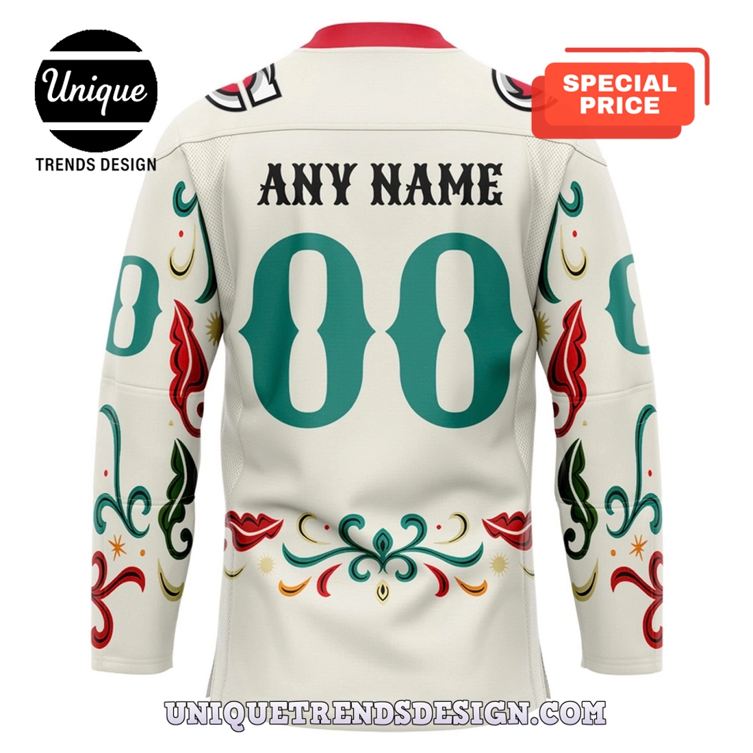 Indulge your passion for the electrifying energy of Cincinnati Cyclones hockey and the vibrant artistry of Día de los Muertos with this exclusive, limited-edition 2025 jersey. A sartorial masterpiece, this garment transcends mere athletic wear, becoming a captivating testament to the confluence of spirited sporting tradition and the resplendent aesthetic of the Day of the Dead. The design, a breathtaking symphony of color and symbolism, meticulously incorporates iconic Cyclones imagery seamlessly interwoven with the kaleidoscopic motifs of the Mexican holiday. Expect an audacious palette of rich, saturated hues – emulating the vibrant marigolds and sugar skulls – artistically rendered to evoke the celebratory yet contemplative spirit of the occasion. This isn’t just apparel; it’s a wearable work of art, a conversation starter, a collector’s item destined to become a cherished heirloom. Own a piece of this ephemeral intersection of athletic prowess and cultural celebration, a unique expression of your individual style and appreciation for both the thrilling intensity of professional hockey and the profound beauty of Día de los Muertos. Secure your piece of this meticulously crafted legacy before it vanishes into the annals of coveted memorabilia, a testament to your discerning taste and passion for the extraordinary. This is more than a jersey; it’s a statement.