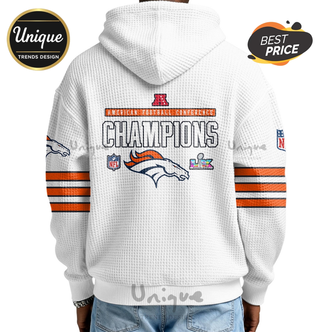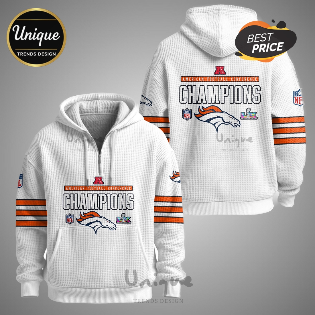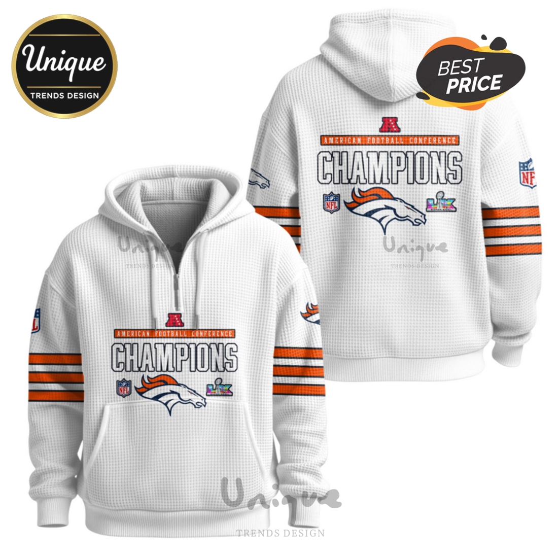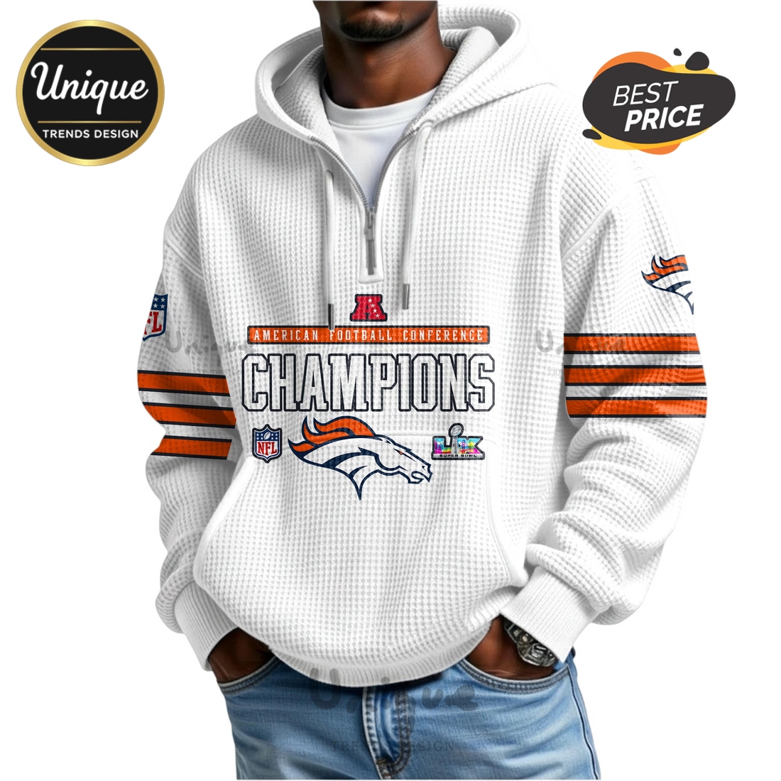 *U.S. only. Final sale items cannot be returned or exchanged.About Denver Broncos AFC Champions Super Bowl Uniform Zip Waffle Hoodie