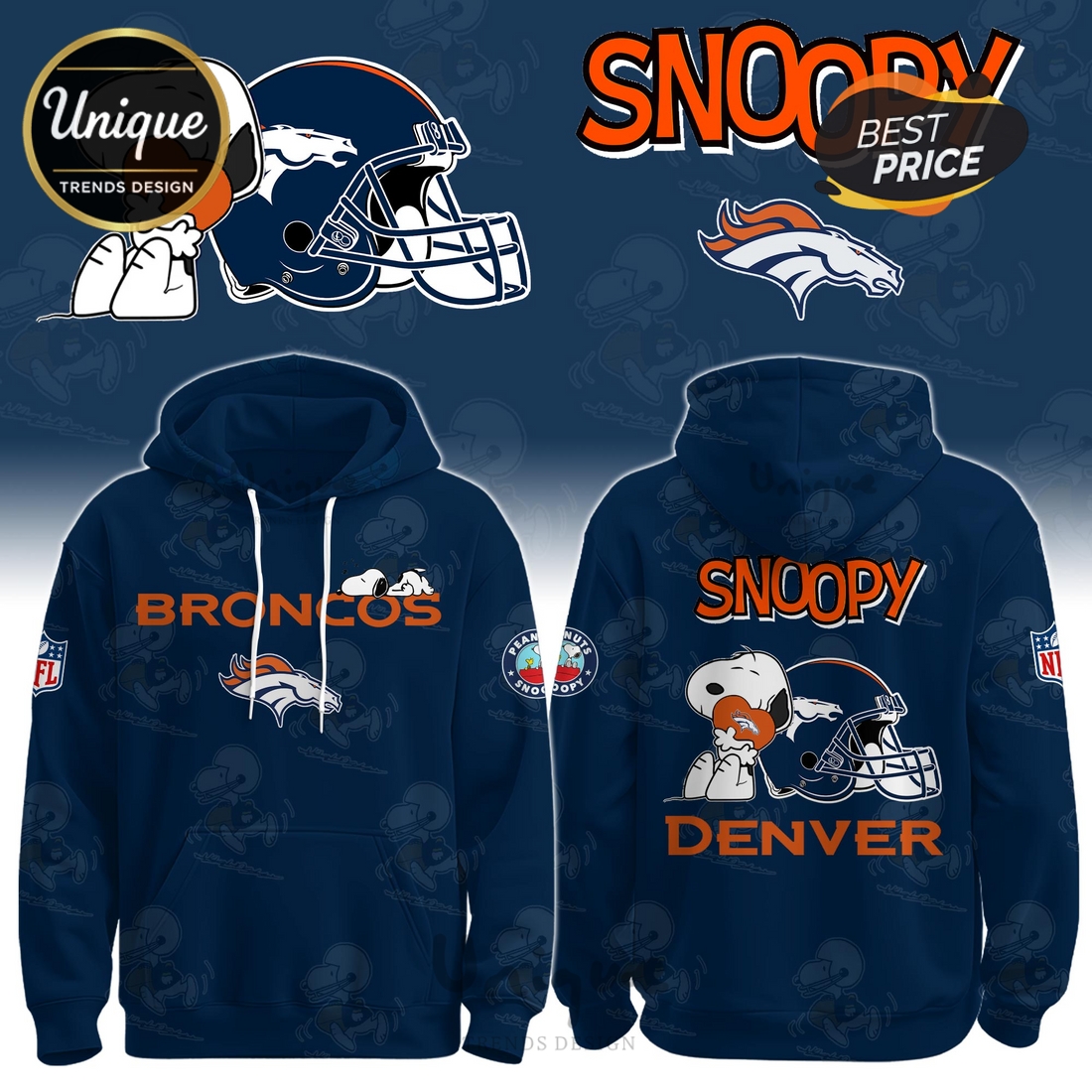 Central to the hoodie’s appeal is its eye-catching graphic. Rather than a standard team logo, this piece features an artfully integrated depiction of Snoopy, the iconic Peanuts character, often playfully interacting with the Denver Broncos’ official insignia. Imagine Snoopy perhaps donning a miniature Broncos helmet, clutching a tiny football, or waving a team flag, all rendered in vibrant team colors against the hoodie’s primary hue—typically a deep navy blue, vibrant orange, or a neutral grey. This unique collaboration offers fans a refreshing alternative to conventional fan gear, injecting a sense of nostalgia, whimsy, and individuality into their game day ensemble. The official NFL licensing ensures that both the Broncos logo and the Snoopy graphic are authentically reproduced, guaranteeing a high-quality product that meets stringent brand standards.