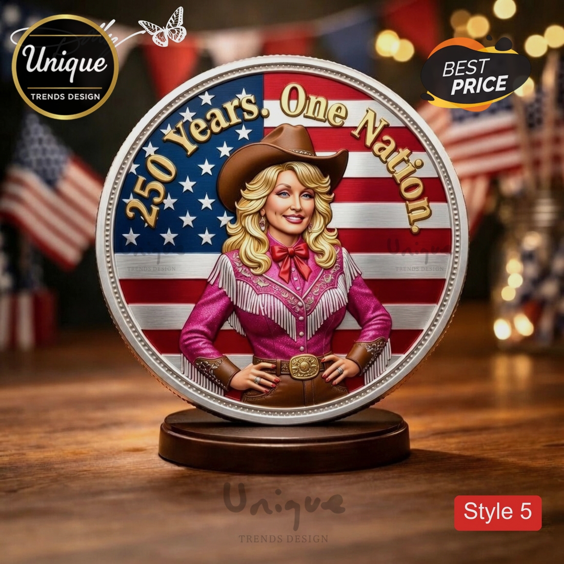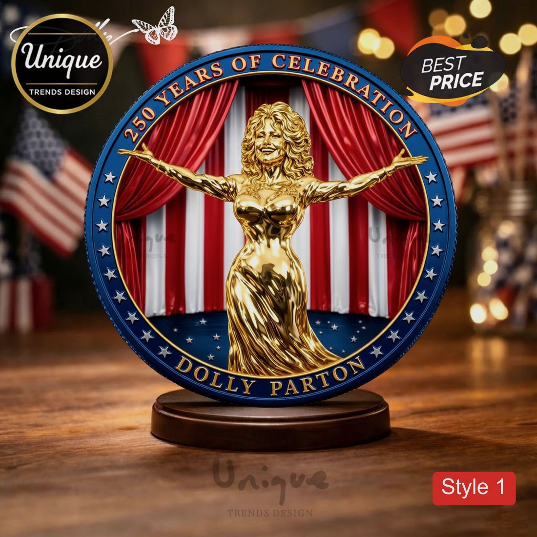 This Dolly Parton 250 Years Celebration Golden Commemorative Display Coin isn’t just a keepsake – it’s a tangible piece of history. Whether it represents a championship season, a legendary band, or an iconic figure, this limited edition piece is built to be admired for a lifetime and passed down as a legacy. It’s the perfect addition to any fan’s display case or a thoughtful gift for a serious collector.