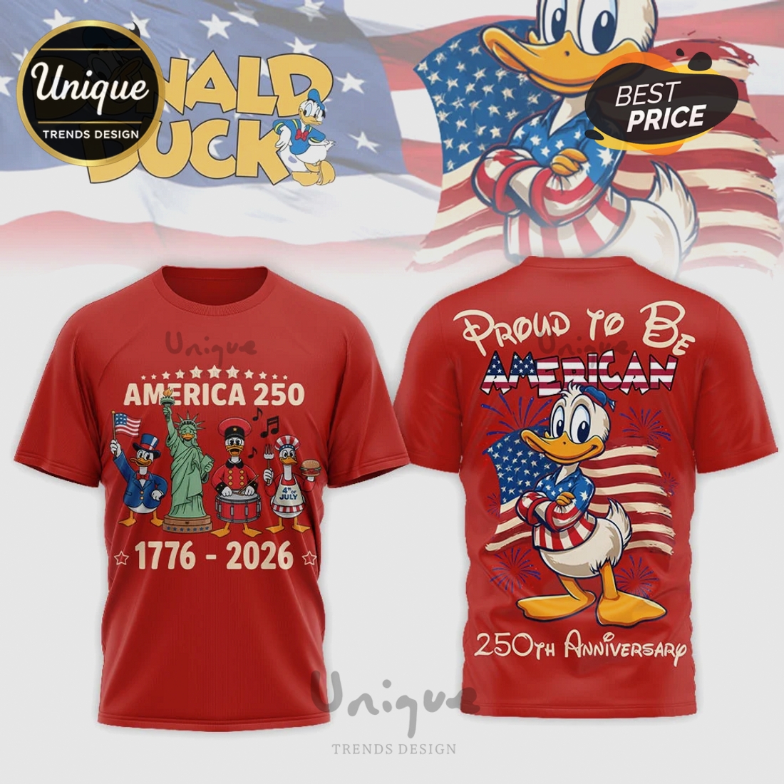 The Donald Duck America 250th Anniversary Patriotic Graphic T-Shirt combines iconic style with pro-grade durability. It’s soft enough for a nap but tough enough for daily wear. Grab yours and make a statement without saying a word.