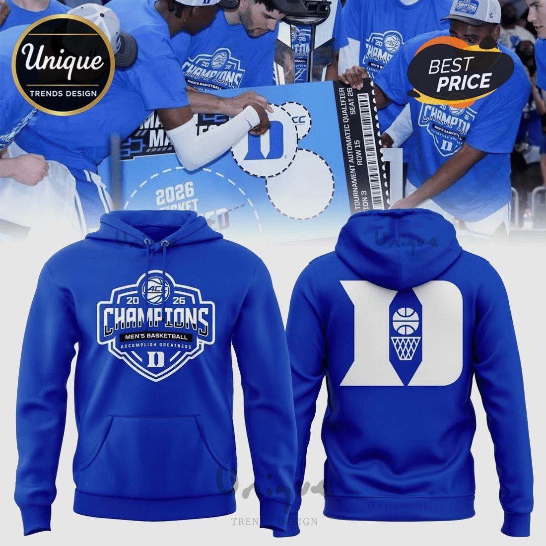 Duke Blue Devils 2026 Champions Basketball Graphic Premium Hoodie Information