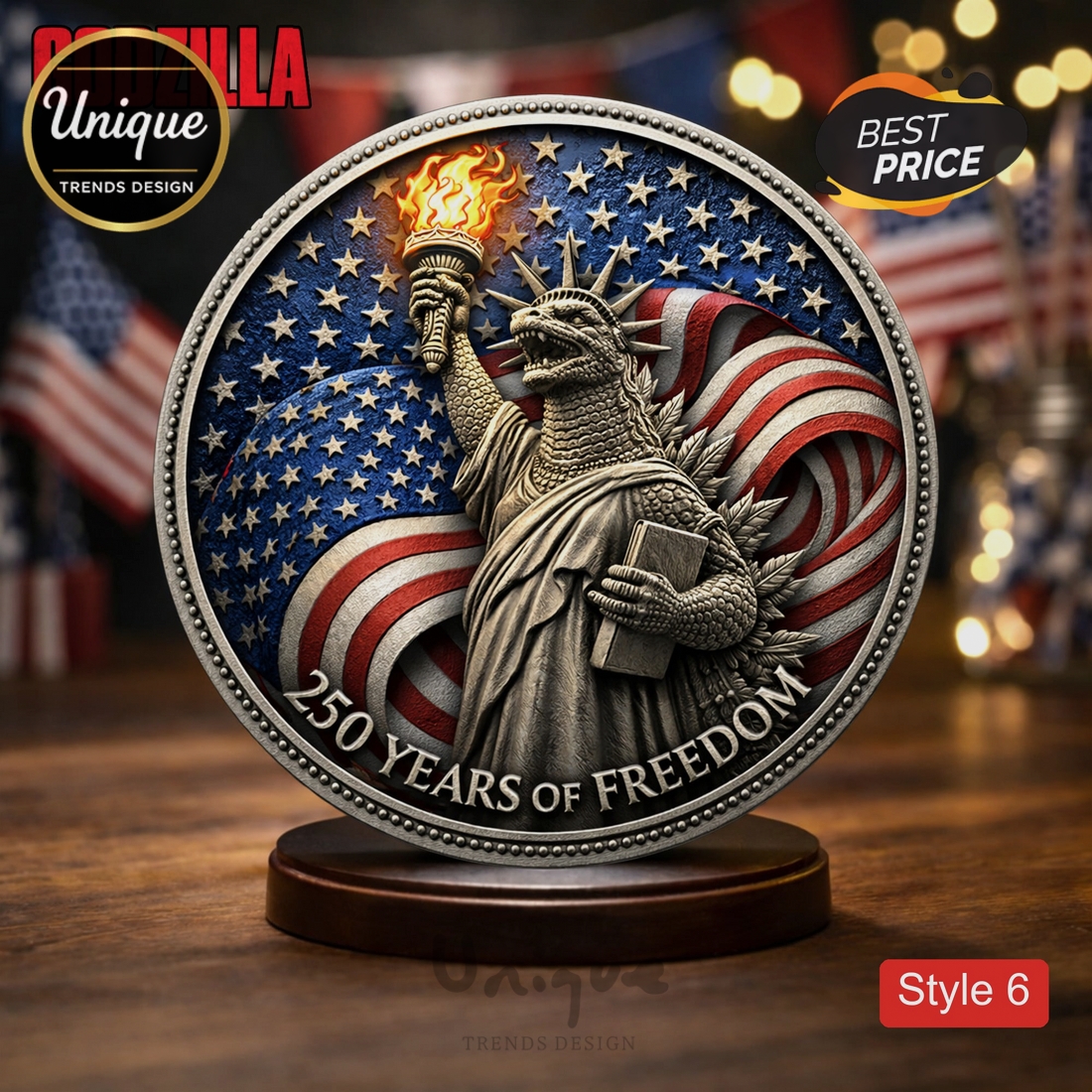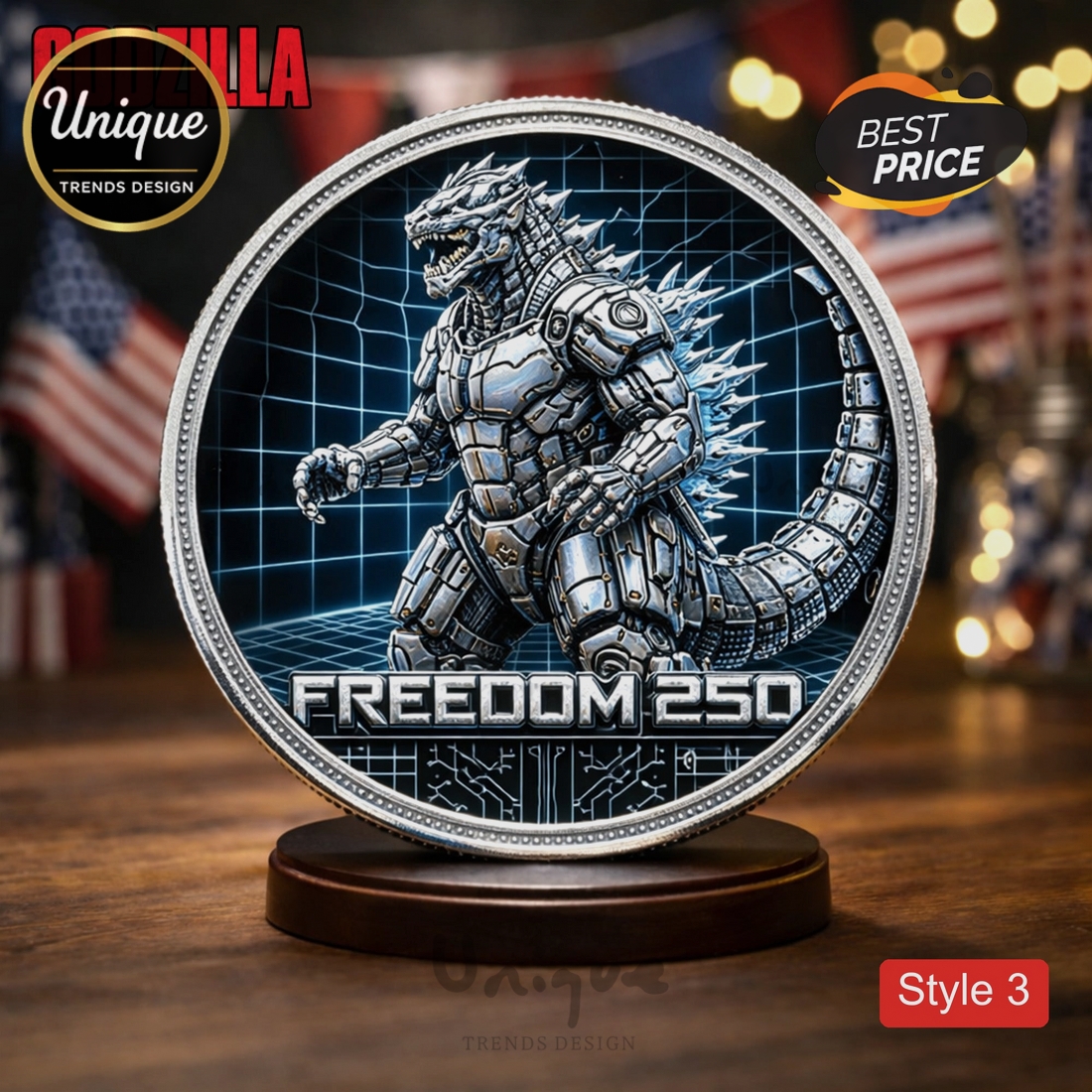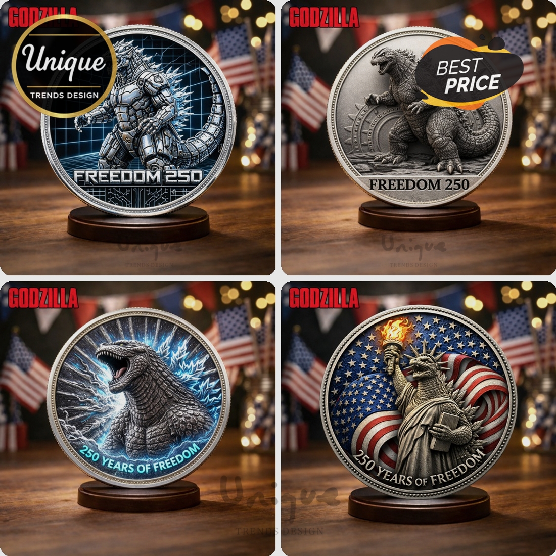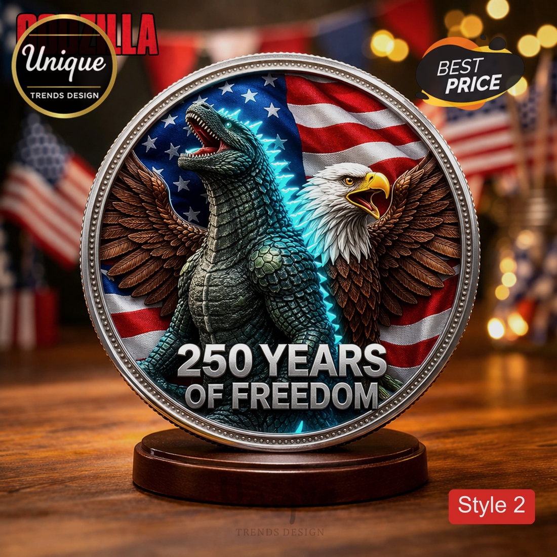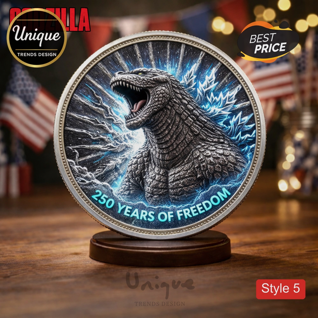 Own a unique piece of history with this Godzilla America 250th Anniversary coin. It’s a special collectible for fans and patriots, perfect for your display shelf.