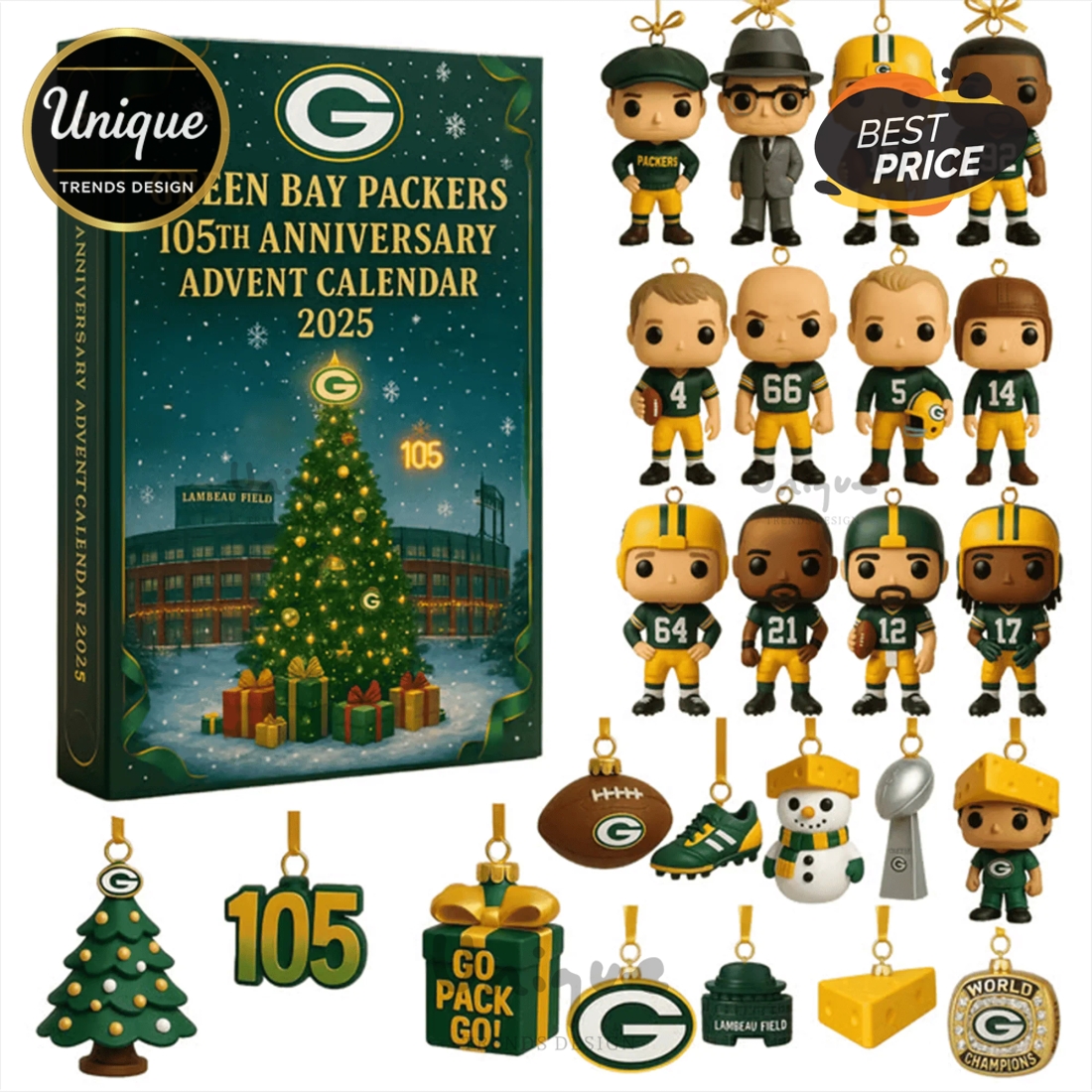 The Green Bay Packers 105th Anniversary Advent Calendar offers a unique and immersive experience for any dedicated fan, collector, or individual seeking a distinctive gift this holiday season. This meticulously designed calendar serves as more than just a countdown; it’s a daily celebration of a storied franchise’s enduring legacy, perfectly timed to commemorate a significant milestone. Encased in robust, high-quality packaging, the calendar immediately captures attention with its vibrant Packers green and gold color scheme, prominently displaying the iconic team logo alongside elegant “105th Anniversary” branding. Its substantial feel and premium finish suggest the valuable contents within, promising an unboxing experience that begins the moment it’s handled. Each of the numbered doors, sequentially arranged, is crafted to build anticipation, inviting users to unveil a new piece of Packers lore or fan essential every day, transforming the period leading up to the holidays into an extended celebration of team pride.