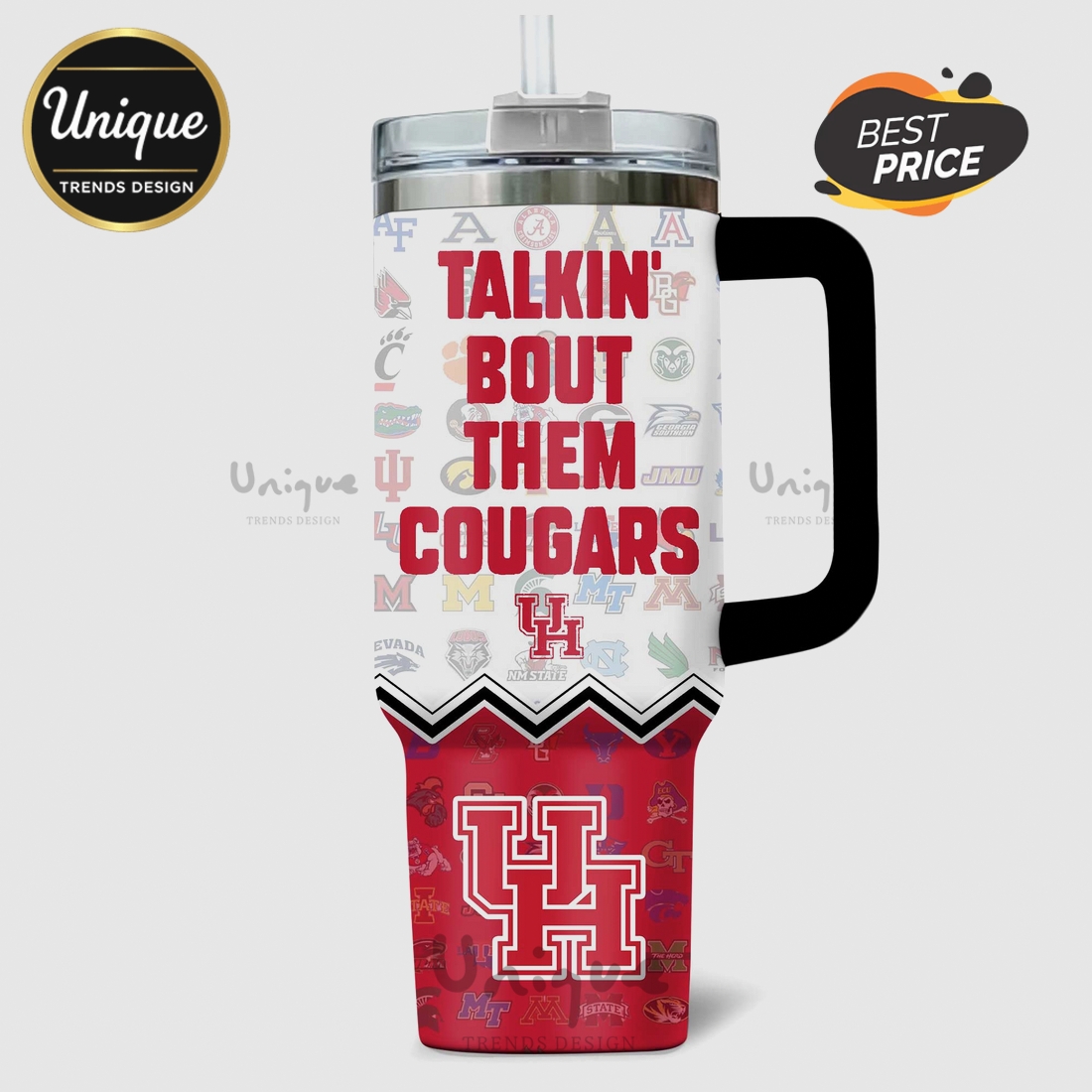 Visually, the tumbler proudly showcases its Houston Cougars affiliation with officially licensed graphics. The iconic team logo and a boldly emblazoned official team slogan, such as “Go Coogs!” or another recognizable rallying cry, are prominently displayed in vibrant school colors. This official licensing guarantees authenticity and ensures that the design elements are precise and enduring, resisting fading and peeling even with regular washing. It allows users to visibly express their unwavering support and pride for the University of Houston, whether they are on campus, at a game, in the office, or simply running errands. This tumbler serves as a powerful symbol of community and shared passion.