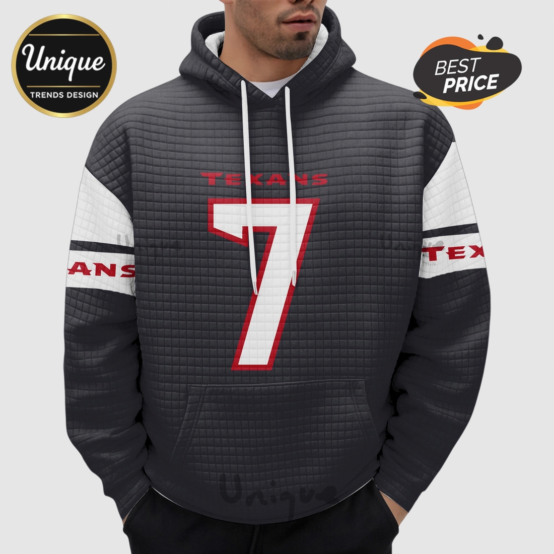 Houston Texans C.J. Stroud 7 Waffle Knit Hoodie adds instant texture and depth to your outfit. It’s light enough to wear under a jacket but warm enough to stand alone. No bulk, just clean style and serious comfort for your daily rotation.
