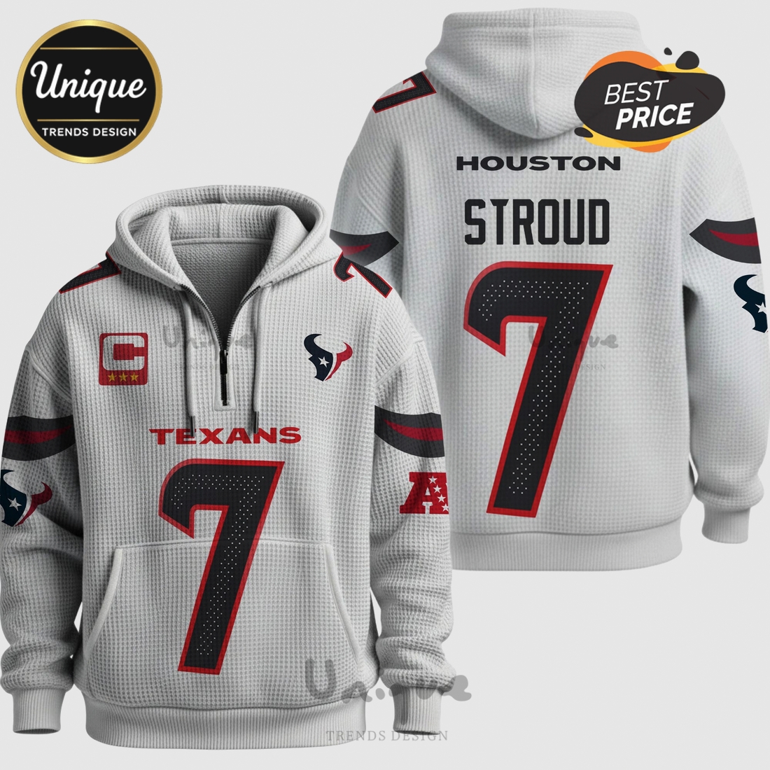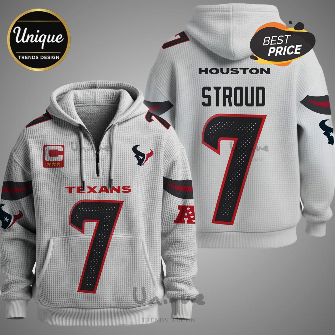 Tired of blending in? Your game day gear needs an upgrade that screams distinction. Command attention and own the sideline, or any scene, with the iconic Houston Texans CJ Stroud 7 Waffle Quarter Zip Hoodie.