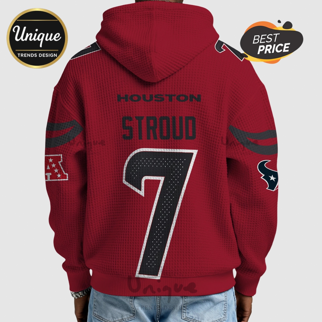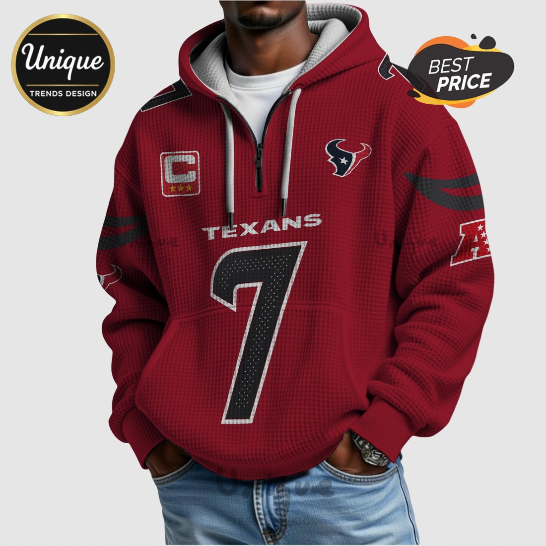 Ultimately, this Stroud 7 NFL Quarter Zip Waffle Hoodie meets the needs of a diverse range of potential customers. For the ardent fan, it’s an authentic, comfortable, and stylish way to celebrate their team and favorite player. It’s a conversation starter, a symbol of allegiance that builds camaraderie among fellow supporters. For those prioritizing comfort, the soft, breathable waffle knit offers an unparalleled tactile experience, making it perfect for lounging or active pursuits. For individuals seeking versatile apparel, the quarter-zip design ensures adaptability across seasons and occasions, from tailgate parties and stadium visits to casual errands and relaxed social gatherings. It’s a garment that champions both performance and personal pride, delivering a high-quality, long-lasting product that combines athletic inspiration with everyday wearability, solidifying its place as an essential item for any Texans enthusiast.