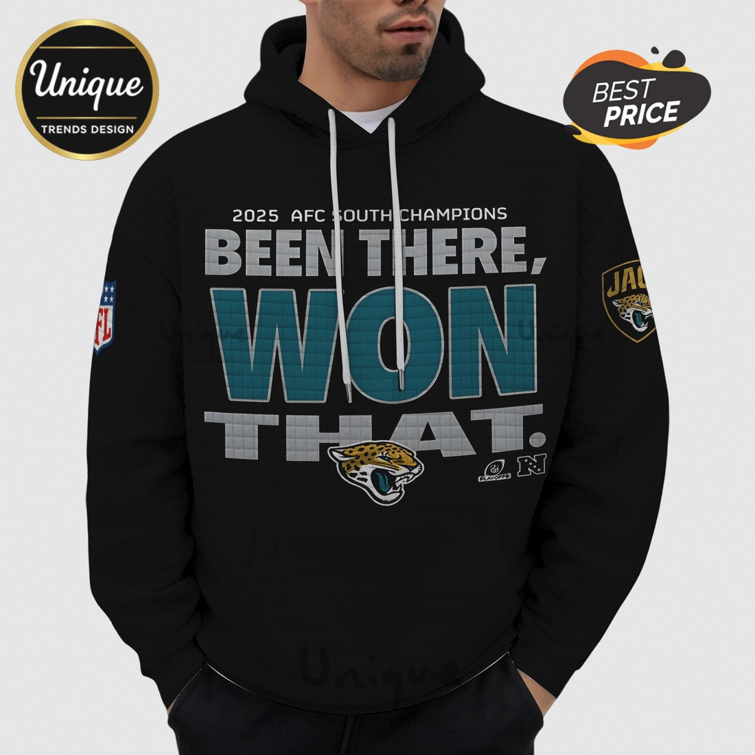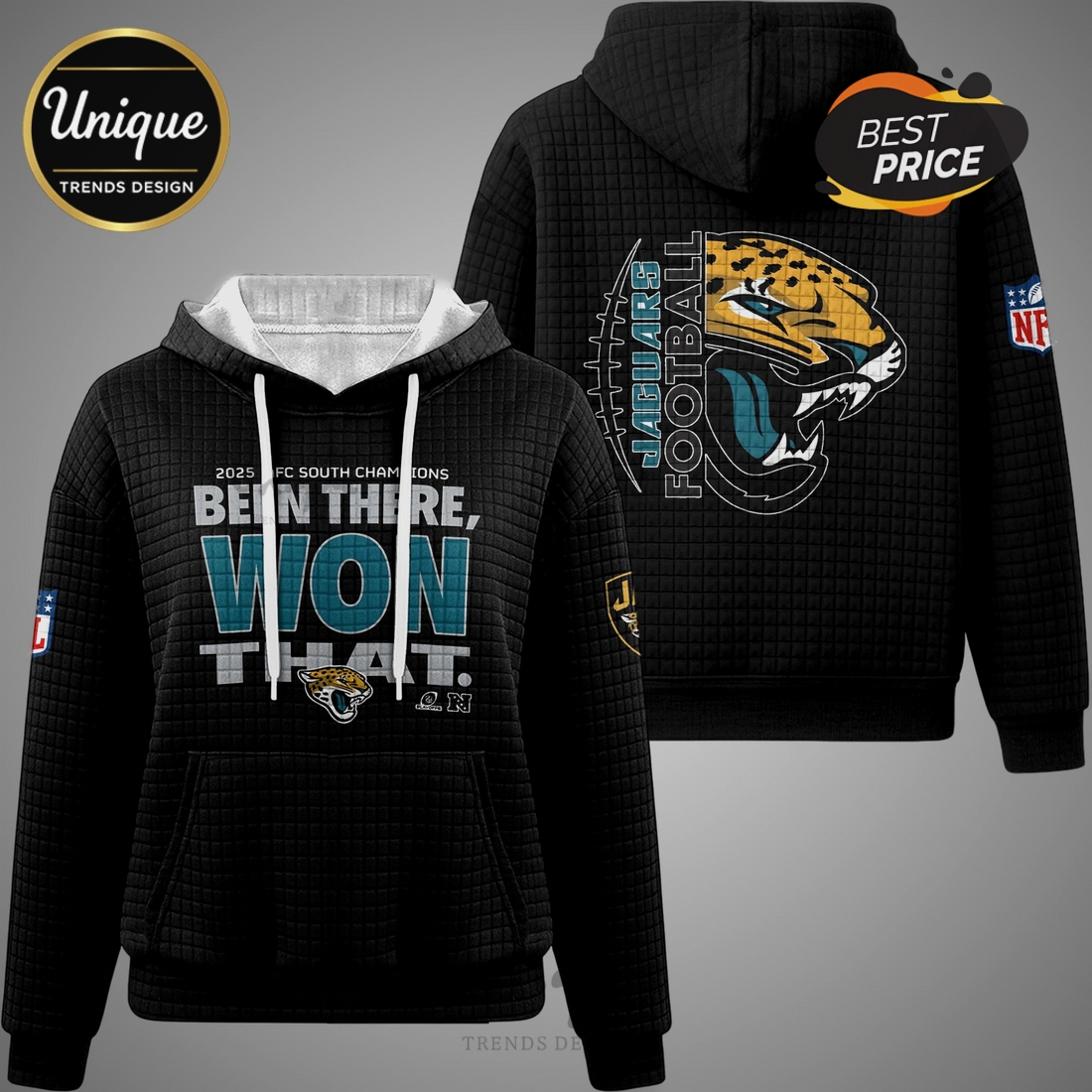 This hoodie truly meets the needs of a diverse range of potential customers. For the die-hard fan, it offers a sophisticated yet comfortable way to express their identity and pride, moving beyond basic team logos to a more declarative statement. It’s perfect for casual wear, game days, tailgates, or simply lounging at home, offering consistent comfort and an undeniable connection to the Jaguars. Those seeking a distinctive gift for a Jaguars enthusiast will find this hoodie an exceptional choice, as its unique material and empowering slogan make it stand out from typical fan gear. Its durable construction ensures it will remain a cherished item for seasons to come, enduring countless washes and wears. The relaxed, comfortable fit is designed to accommodate various body types, providing an accommodating silhouette that allows for easy layering. Ultimately, this Jacksonville Jaguars Been There Won That NFL Waffle Hoodie offers more than just warmth or team spirit; it provides a premium, comfortable, and meaningful way for fans to live their loyalty, making it an essential addition to any Jaguars supporter’s wardrobe.