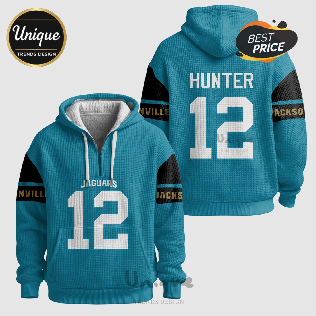 *U.S. only. Final sale items cannot be returned or exchanged.About Jacksonville Jaguars Hunter 12 NFL Quarter Zip Waffle Hoodie