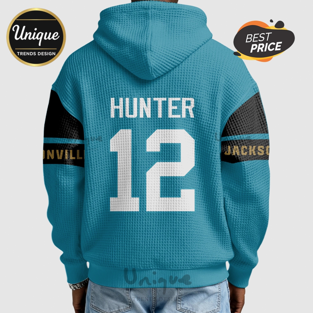 The hoodie’s design proudly showcases official Jacksonville Jaguars branding, ensuring authenticity and immediate recognition of team allegiance. Details like the prominent team logo, often expertly embroidered or high-quality screen-printed, are strategically placed, usually on the chest or sleeve, making a clear statement of support. The specific “Hunter 12” designation suggests a particular design series or color palette, which likely incorporates the iconic teal, black, and gold of the Jaguars, possibly with an accent of a hunter green, creating a sleek and modern aesthetic that transcends typical game-day wear. The fit is generally designed to be comfortable and athletic, allowing for a full range of motion without appearing overly baggy, making it suitable for various body types and activities.