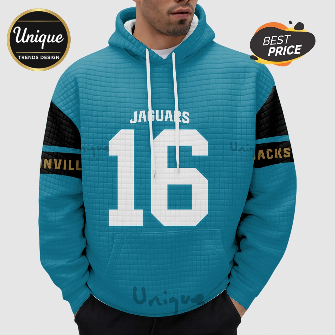 Jacksonville Jaguars Trevor Lawrence 16 Waffle Knit Hoodie adds instant texture and depth to your outfit. It’s light enough to wear under a jacket but warm enough to stand alone. No bulk, just clean style and serious comfort for your daily rotation.