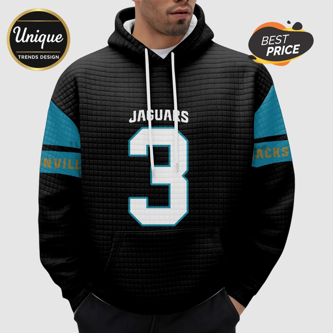 Jakobi Meyers Jacksonville Jaguars 3 NFL Waffle Knit Hoodie adds instant texture and depth to your outfit. It’s light enough to wear under a jacket but warm enough to stand alone. No bulk, just clean style and serious comfort for your daily rotation.