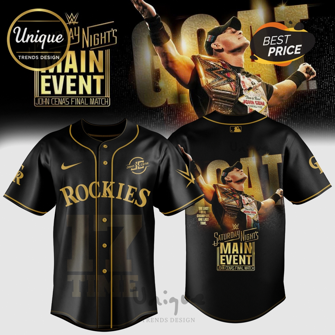 John Cena Saturday Night’s Main Event 2025 Rockies Baseball Jersey brings together the sporty look of a classic baseball jersey with lightweight comfort and easy everyday styling. It works well for fan-inspired outfits, personalized gifts, casual wear, and special events where a bold and memorable design makes the difference.