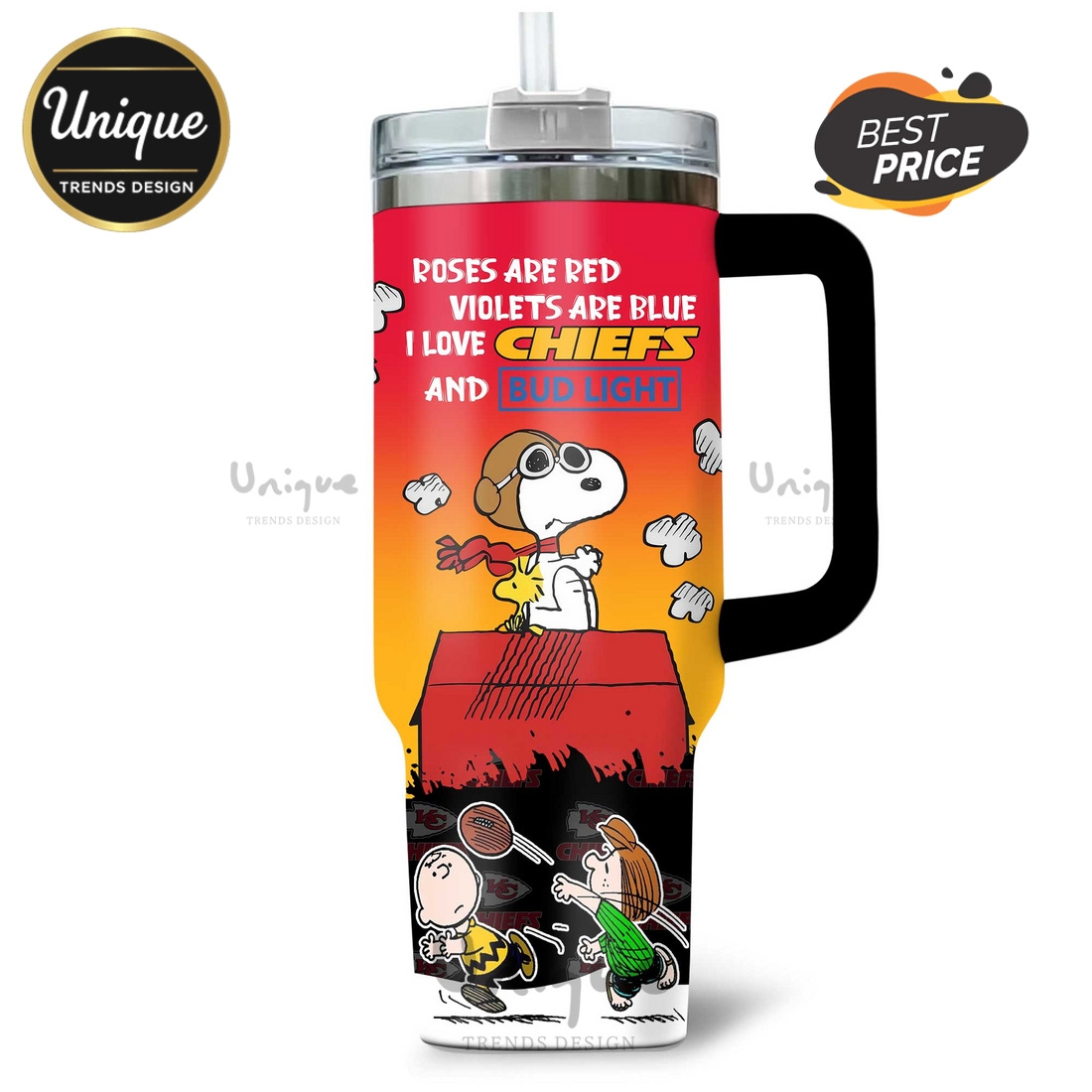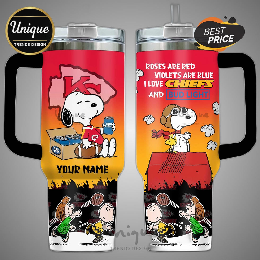 The thoughtful design extends to practical usability features. A secure, spill-resistant lid, often equipped with a straw hole and a rotatable cover for direct sipping, ensures mess-free transport and enjoyment. An ergonomically designed handle provides a comfortable and secure grip, making it easy to carry even when full, a critical feature for a large-capacity tumbler. Furthermore, the base of the tumbler is typically designed to fit snugly into most standard car cup holders, making it an indispensable companion for road trips, daily commutes, and busy lifestyles. Cleaning is straightforward, though hand-washing is often recommended to preserve the integrity of the personalization and the tumbler’s finish. This Kansas City Chiefs Snoopy Personalized 40oz Tumbler perfectly meets the needs of customers seeking to proudly display their team loyalty and affection for Snoopy, while also demanding a high-performance, durable, and uniquely customized hydration solution that supports their active and fan-filled lives.