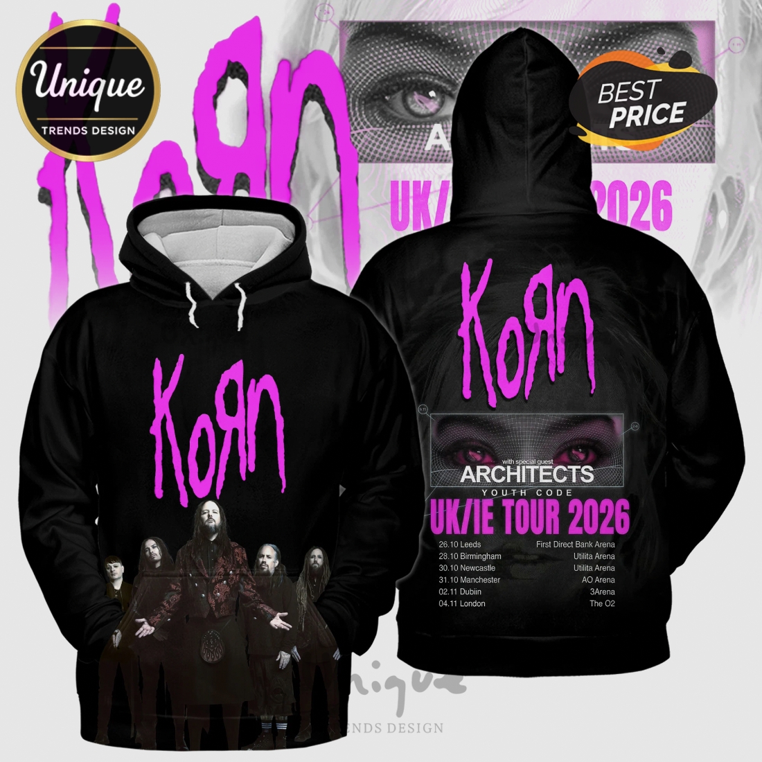 The Korn UK IE Tour 2026 Architects Concert Graphic T-Shirt is designed for anyone who loves a high-quality hoodie that feels as good as it looks. From the soft interior to the durable print, it’s perfect for everyday wear, gifting, or showing off your unique style season after season.