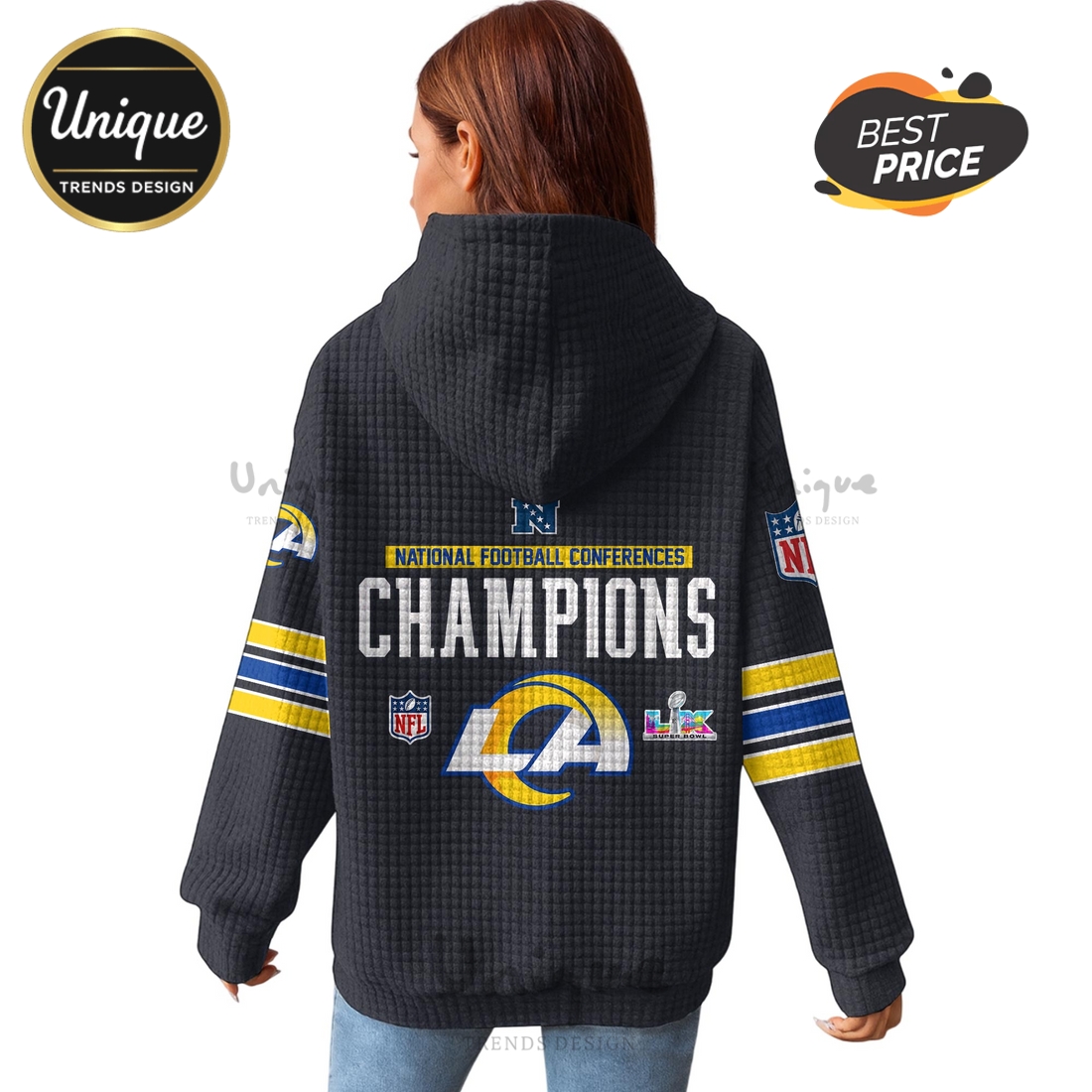 This Rams LX Champions Waffle Hoodie keeps the spirit of victory alive. It’s a timeless piece, linking generations of fans to that unforgettable golden era and the team’s enduring legacy.