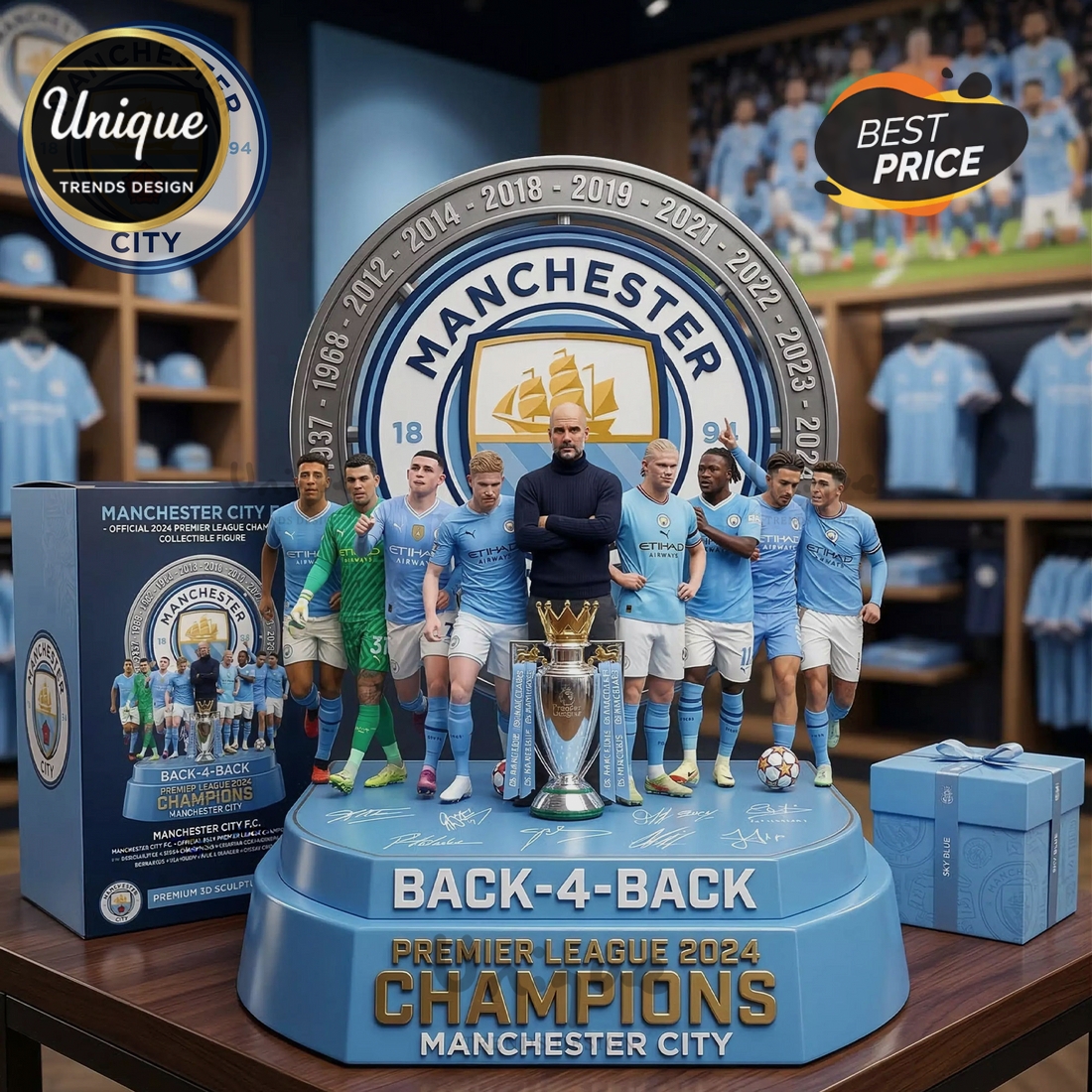 The Manchester City Back-4-Back Champions 2024 Premier League Statue turns your favorite moments into a permanent fixture. Unlike thin, flimsy alternatives, this 14mm plaque has the weight and clarity of a premium award. It’s an elegant, modern way to show off your loyalty to your favorite teams or artists, and it’s built to stay sharp for years to come.