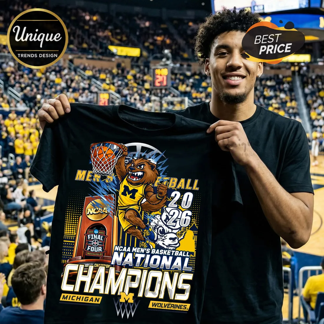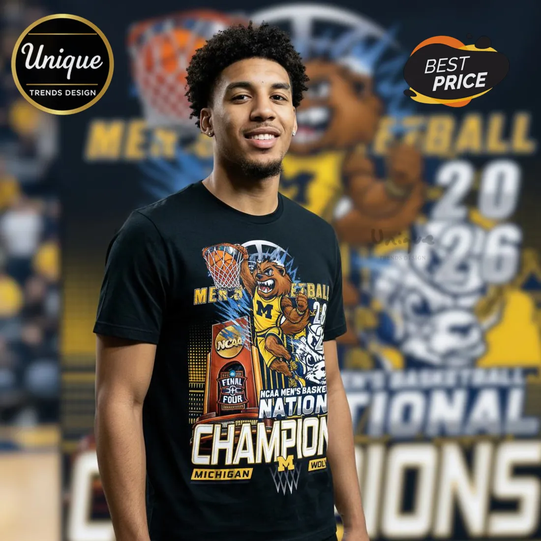 This Michigan Wolverines National Champions 2026 Men’s NCAA Final Four Mascot T-Shirt is for the true believers, the ones who bleed maize and blue, through every season, every challenge. Never waver.