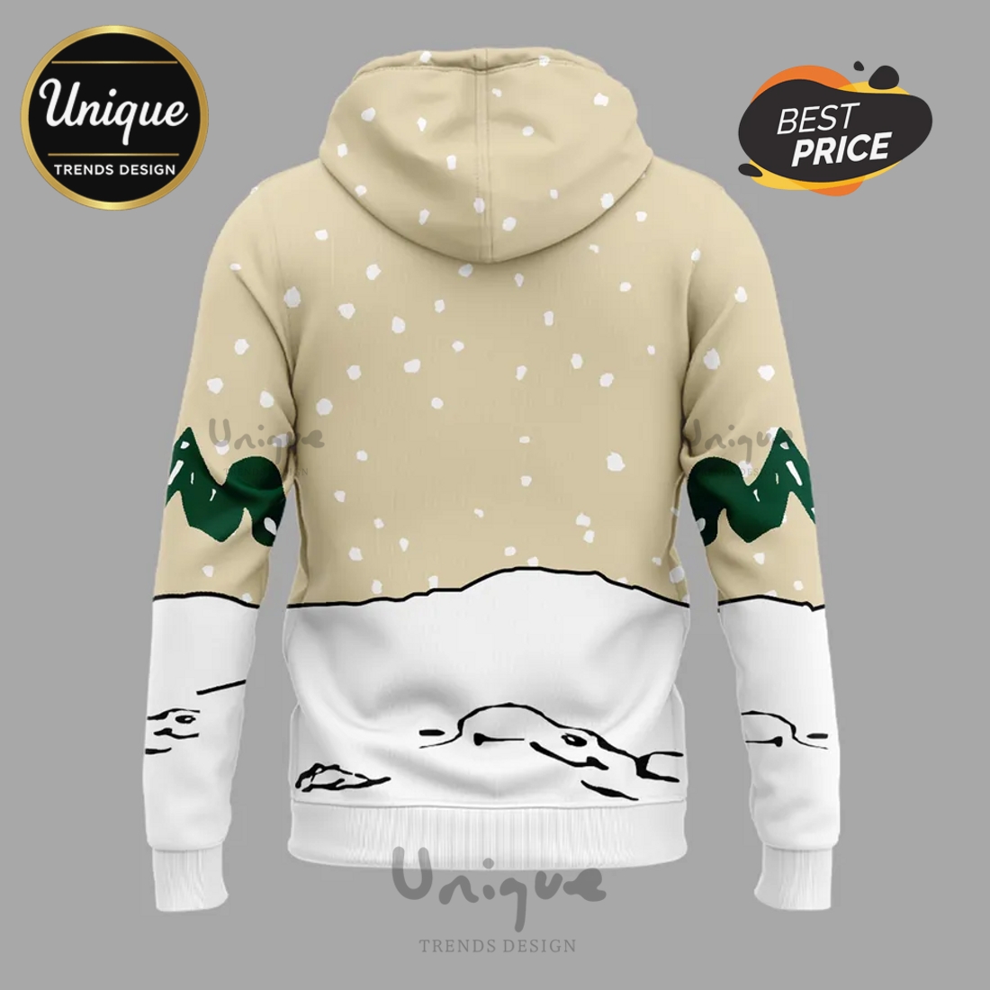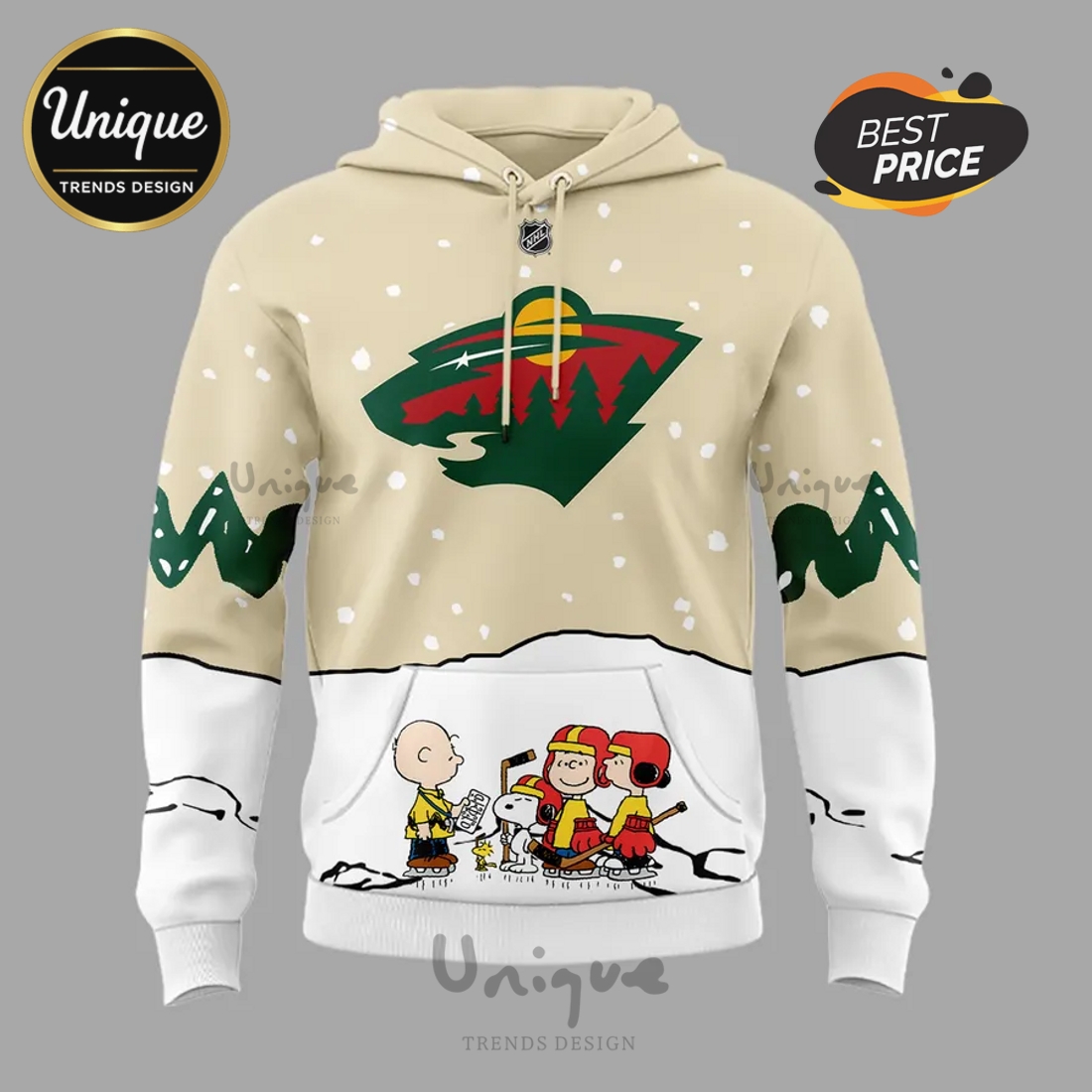 The Minnesota Wild x Snoopy Limited Edition 2025 Hoodie presents a truly unique fusion, an essential garment for fans who appreciate both the thrilling action of NHL hockey and the timeless charm of Charles Schulz’s beloved beagle. This hoodie’s aesthetic masterpiece begins with its deep, forest green base, reminiscent of the Wild’s iconic home jerseys, providing a rich canvas that immediately signals team allegiance. Across the chest, a carefully embroidered Snoopy takes center stage, not merely a static image, but dynamically depicted in full Minnesota Wild gear: a miniature helmet adorned with the team’s ‘M’ logo, a tiny hockey stick clutched in his paws, and a determined, yet utterly endearing, expression as if about to execute a slapshot. His classic white and black fur stands out vividly against the green, while subtle red and wheat accents from the Wild’s secondary colors are expertly woven into his uniform details and the outline of a puck at his feet. Below this captivating scene, the ‘Minnesota Wild’ wordmark is rendered in a slightly distressed, vintage-style font, complemented by a discreet ‘Limited Edition 2025’ patch stitched near the hem, confirming its exclusive status and making it an instant collectible.