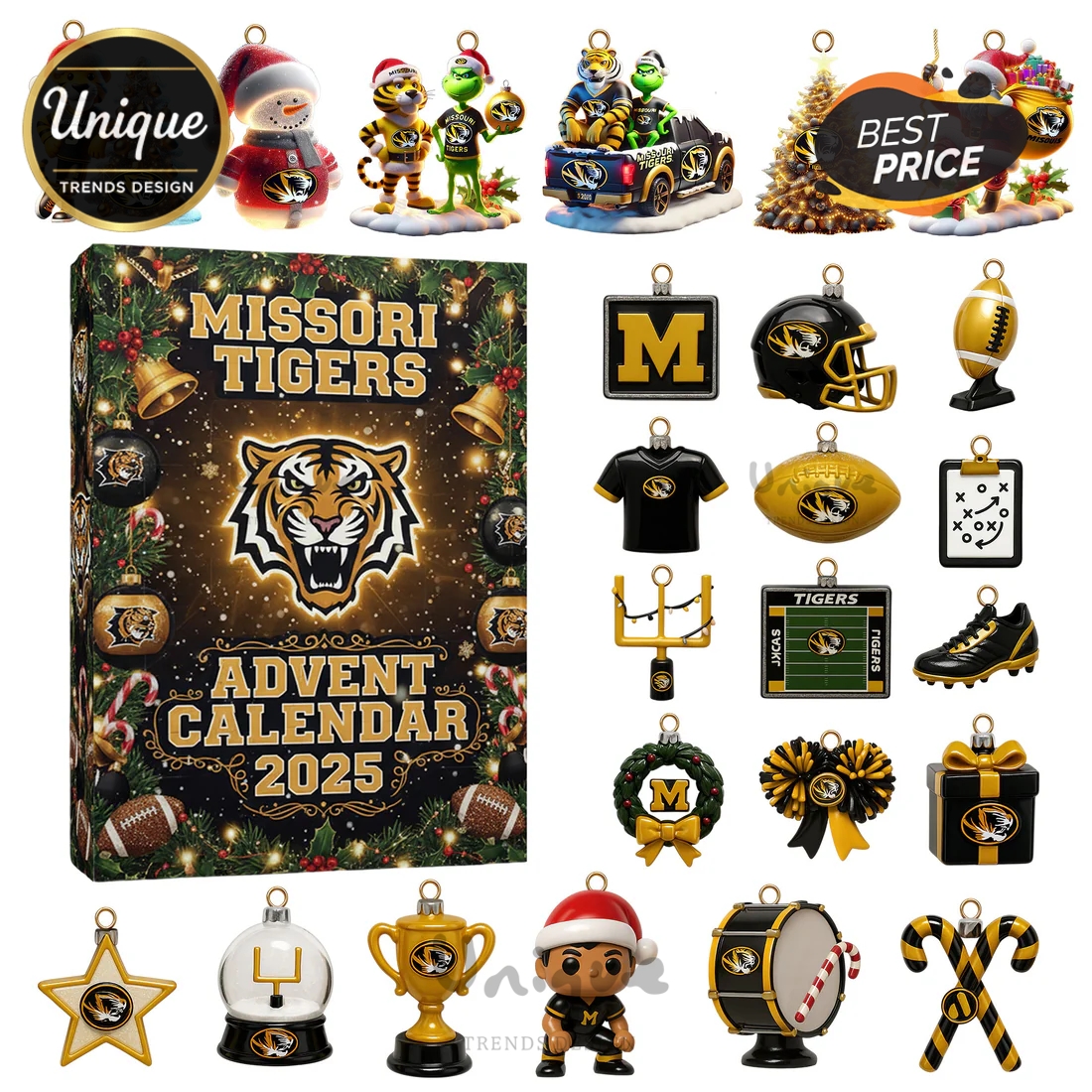 The Missouri Tigers 2025 Advent Calendar offers a unique and spirited countdown to the holidays for any dedicated fan, blending traditional festive anticipation with unwavering team pride. This premium calendar is engineered as a robust, visually striking tribute to the University of Missouri, immediately grabbing attention with its authentic black and gold color scheme, official Mizzou logos, and often featuring a triumphant Truman the Tiger or an iconic image of Faurot Field. Each of the twenty-five individually numbered compartments, precisely die-cut and designed for easy opening, conceals a distinct, officially licensed piece of Mizzou memorabilia or a functional accessory, ensuring a new surprise daily leading up to Christmas.