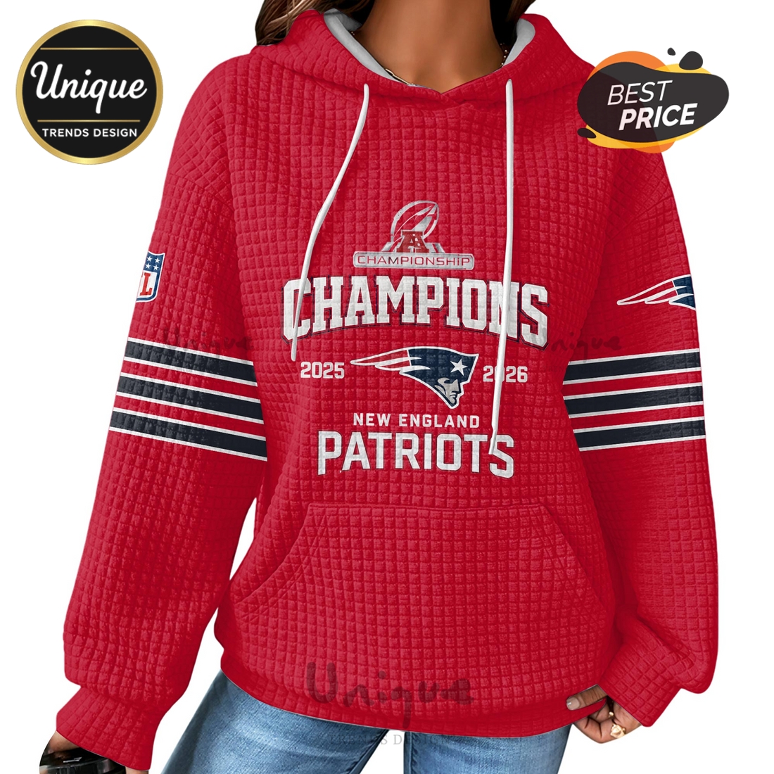 Epic Fanatic GearNew England Patriots Champions 2025-2026 Football Waffle Hoodie