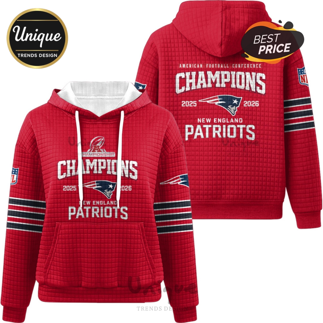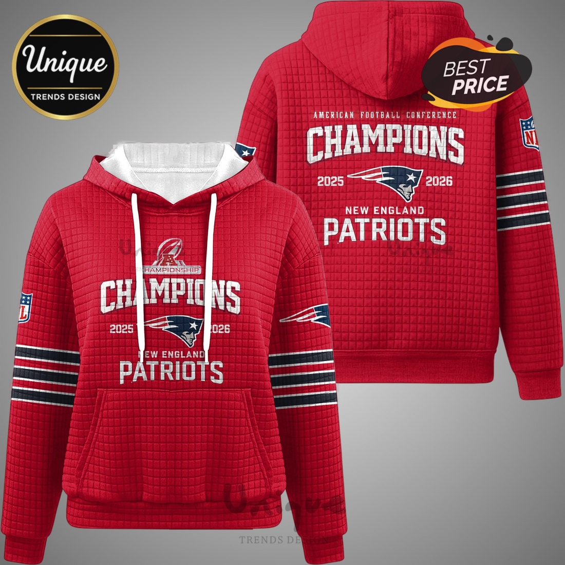 Central to its appeal is the commemorative championship design, prominently featuring the official New England Patriots logo alongside bold, intricately rendered “2025-2026 Champions” text. This isn’t just a generic logo; it’s a meticulously crafted graphic, potentially incorporating a stylized Lombardi Trophy or a championship banner design, rendered with high-quality, long-lasting screen printing or embroidery that resists cracking and fading. The precise championship year makes this hoodie an exclusive collector’s item, capturing a specific moment of glory that will resonate deeply with fans who followed every snap of that victorious season. Its color palette adheres strictly to the iconic Patriots navy, red, silver, and white, ensuring authentic team representation that is instantly recognizable.