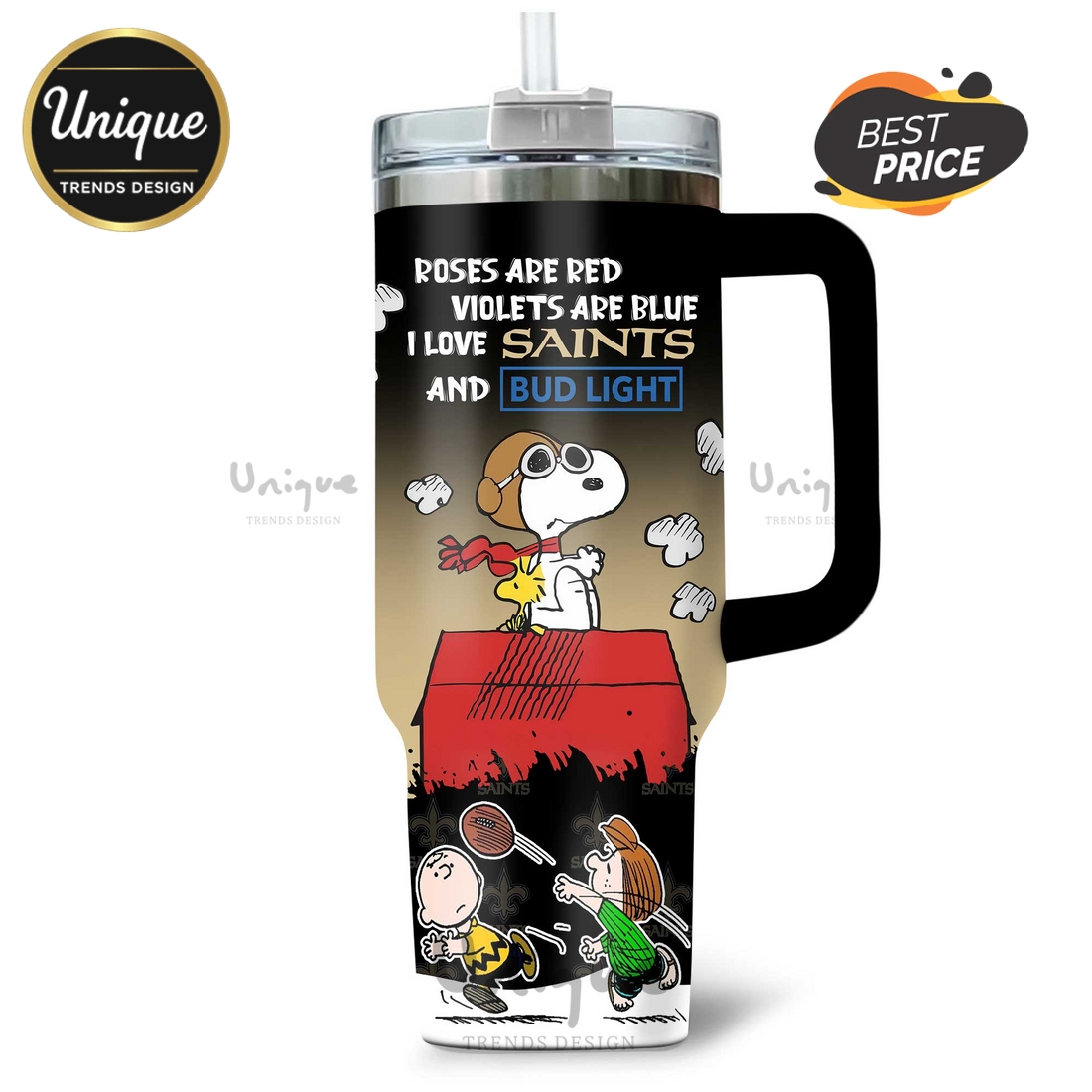 Functionality is not sacrificed for aesthetics; rather, it is enhanced by thoughtful design elements. The tumbler is equipped with a secure, leak-resistant lid, often featuring a convenient slider or a flip-top mechanism, and is typically straw-compatible for easy sipping on the go. An ergonomically designed, integrated handle ensures comfortable and secure carrying, even when the tumbler is full, making it ideal for commutes, gym sessions, tailgates, or simply moving around the house. Furthermore, despite its generous volume, the tumbler’s base is intelligently tapered to fit seamlessly into most standard car cup holders, a vital feature for commuters and travelers. The robust stainless steel construction guarantees exceptional durability, resisting dents, scratches, and rust, ensuring this tumbler will withstand daily wear and tear and remain a cherished item for seasons to come. For potential customers, this product perfectly addresses the need for a reliable, large-capacity hydration solution that simultaneously allows for a strong, personalized expression of their New Orleans Saints fandom, all while embracing the timeless charm of Snoopy. It is an investment in both practicality and pride, destined to become an indispensable daily companion.