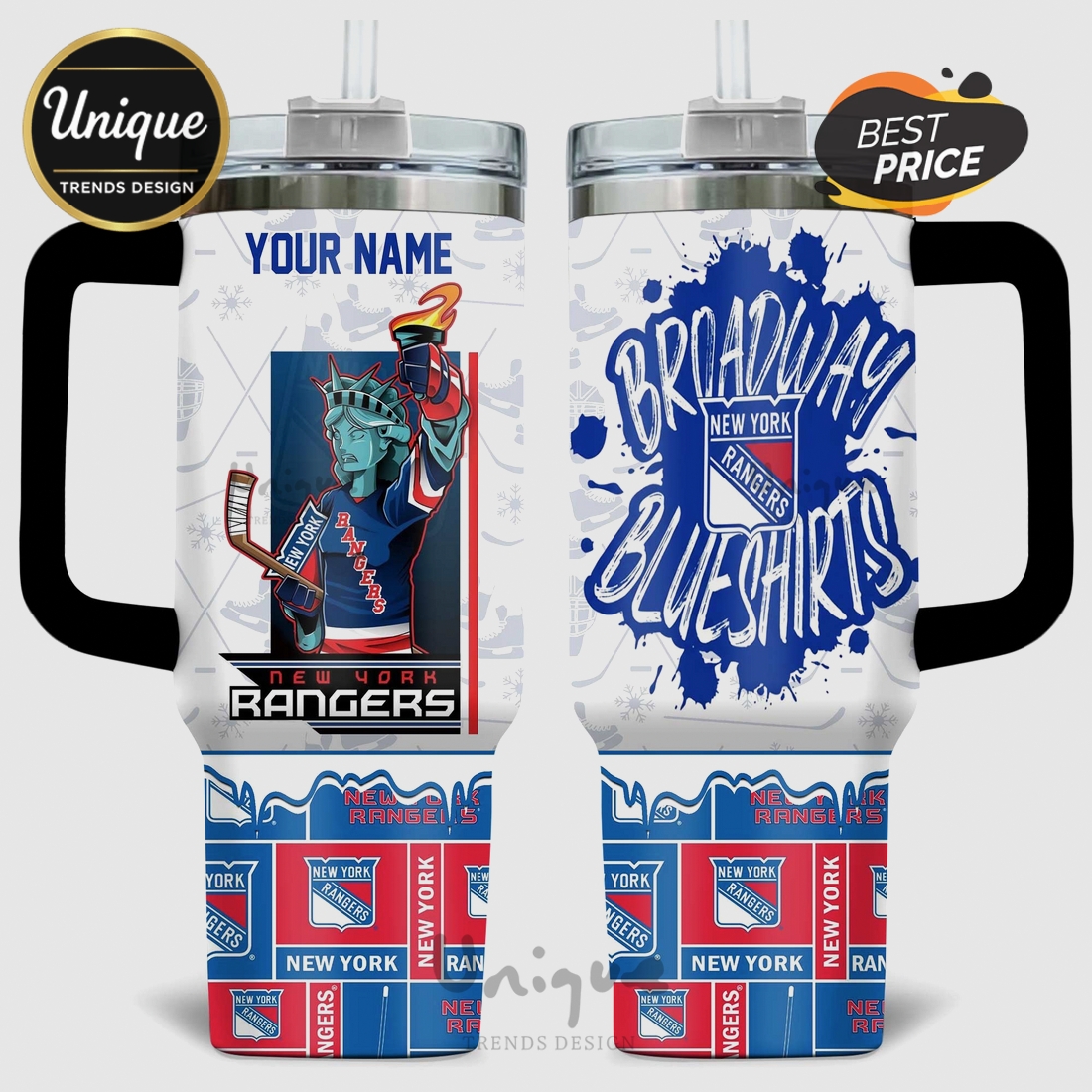 The aesthetic appeal of this tumbler is where the heart of the Broadway Blueshirts truly shines. Adorned with the authentic New York Rangers logo, often incorporating the classic shield and vibrant team colors of blue, red, and white, the design is a clear and proud declaration of fandom. The “Broadway Blueshirts” moniker is not merely a name; it’s a deep-rooted historical reference that resonates with the rich legacy of the team, evoking the electrifying atmosphere of Madison Square Garden and the unwavering spirit of New York hockey. This specific branding elevates the tumbler beyond a generic team item, making it a collector’s piece that connects fans to the very soul of the franchise. The graphics are applied with precision, engineered to resist fading and peeling, ensuring your team pride remains vibrant for years to come. For potential customers, this tumbler meets a range of needs: it’s a robust hydration tool for anyone seeking reliable temperature retention, a durable companion for active lifestyles, and an authentic emblem of team loyalty for the dedicated Rangers fan. It also serves as an exceptional gift, combining a premium, long-lasting product with a deeply personal expression of sporting passion, making it an ideal choice for birthdays, holidays, or any occasion to celebrate a love for the Blueshirts.