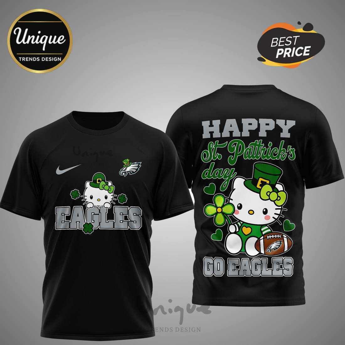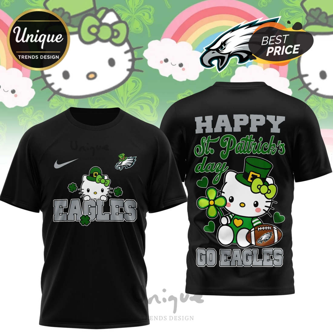 *U.S. only. Final sale items cannot be returned or exchanged.Philadelphia Eagles Premium NFL Hello Kitty St. Pattrick’s Day 3D Shirt Overview