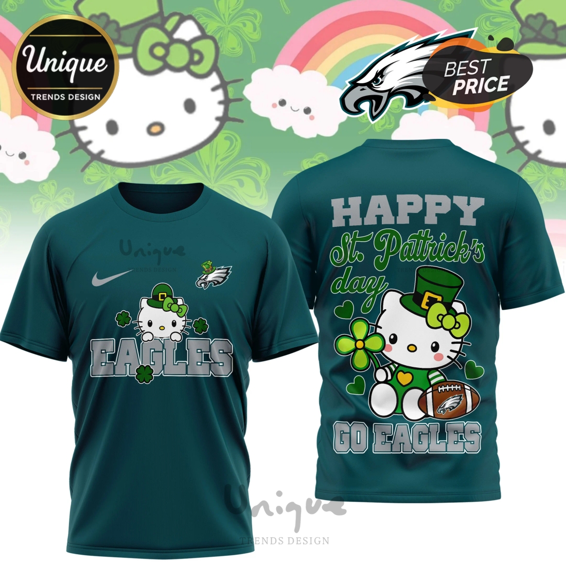 Philadelphia Eagles Premium NFL Hello Kitty St. Pattrick’s Day 3D Shirt Information