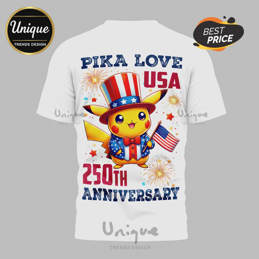 Pikachu USA 250th Anniversary 1776-2026 Spark of Freedom 3D T-Shirt Information