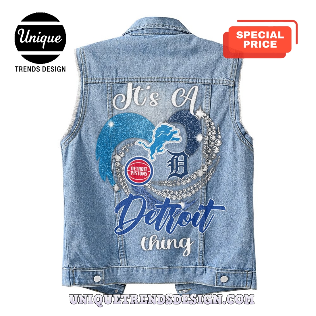 Premium Detroit Mixed Sleeveless Denim Jacket Information