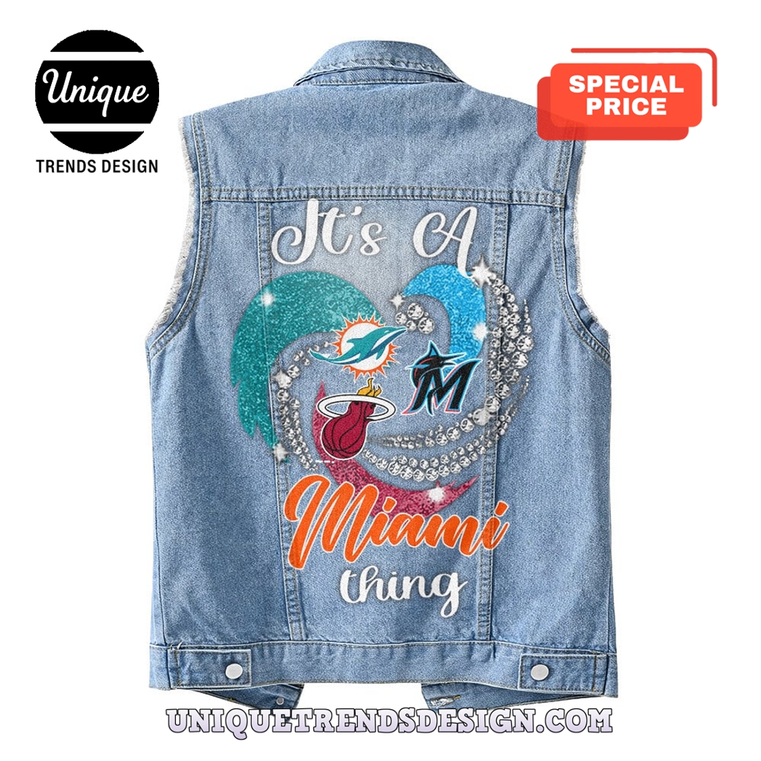 *U.S. only. Final sale items cannot be returned or exchanged.Premium Miami Mixed Sleeveless Denim Jacket Overview