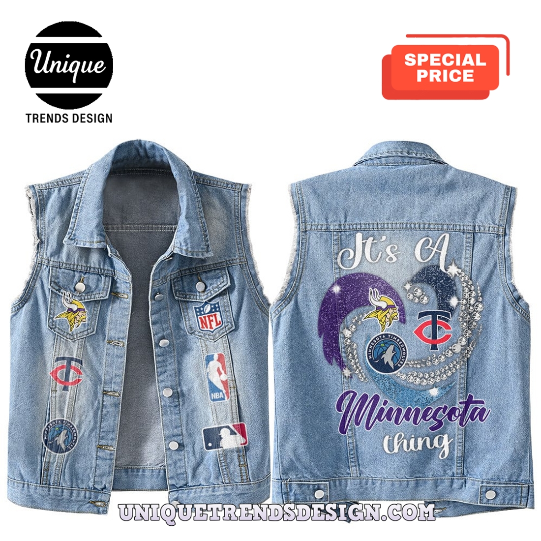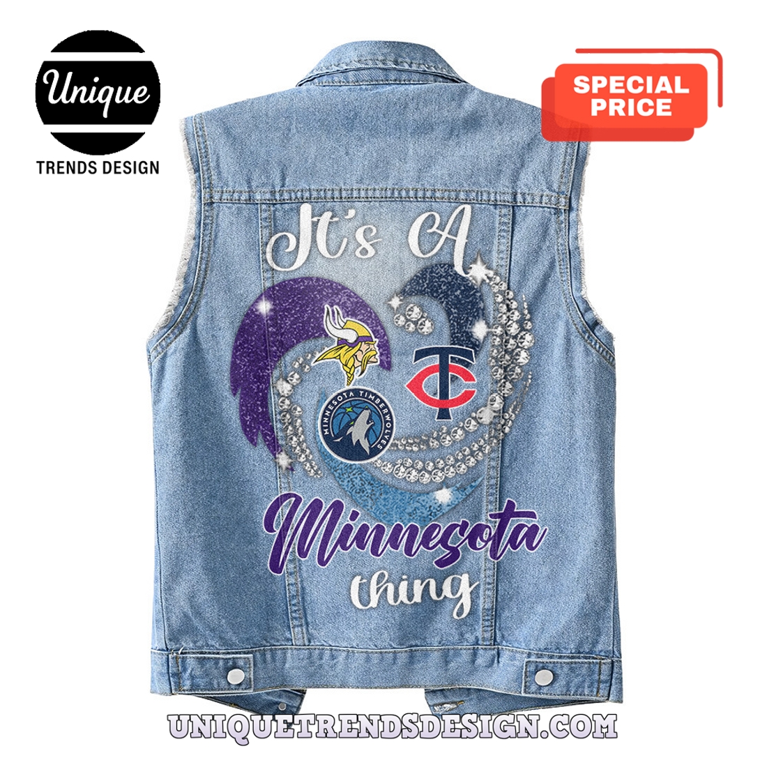 Looking for a Premium Minnesota Mixed Sleeveless Denim Jacket that blends rugged denim style with everyday comfort? This piece is built for fans who want something versatile, durable, and easy to pair with anything in their wardrobe.