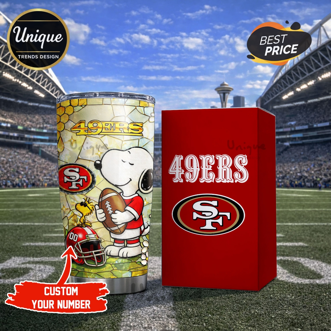 Owning the Premium San Francisco 49ers NFL Snoopy Pride Tumbler means embracing a blend of iconic sports fandom and playful design, all while benefiting from unparalleled beverage insulation technology. This exceptional piece of drinkware stands out immediately with its vibrant, officially licensed graphics, meticulously showcasing the beloved Snoopy character in a spirited expression of allegiance to the San Francisco 49ers. The design is a masterful fusion of whimsy and team identity, often depicting Snoopy in a dynamic, celebratory pose, perhaps sporting a miniature 49ers helmet or waving a team flag, all set against the instantly recognizable scarlet and gold palette of the NFL franchise. This intricate detailing is not merely printed; it’s applied with a premium finish that resists fading and scratching, ensuring that the visual appeal endures through countless uses and washes, preserving the sharp lines and rich colors that make it so distinctive. Far beyond its captivating aesthetics, the tumbler is engineered for peak performance, constructed from high-grade, food-safe 18/8 stainless steel, which guarantees durability against dents and rust while ensuring your drinks remain free of metallic aftertastes.