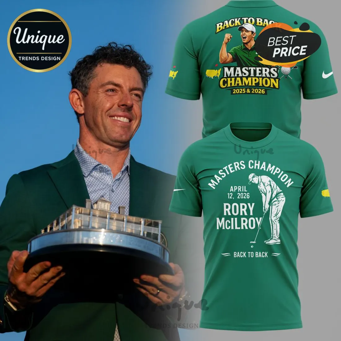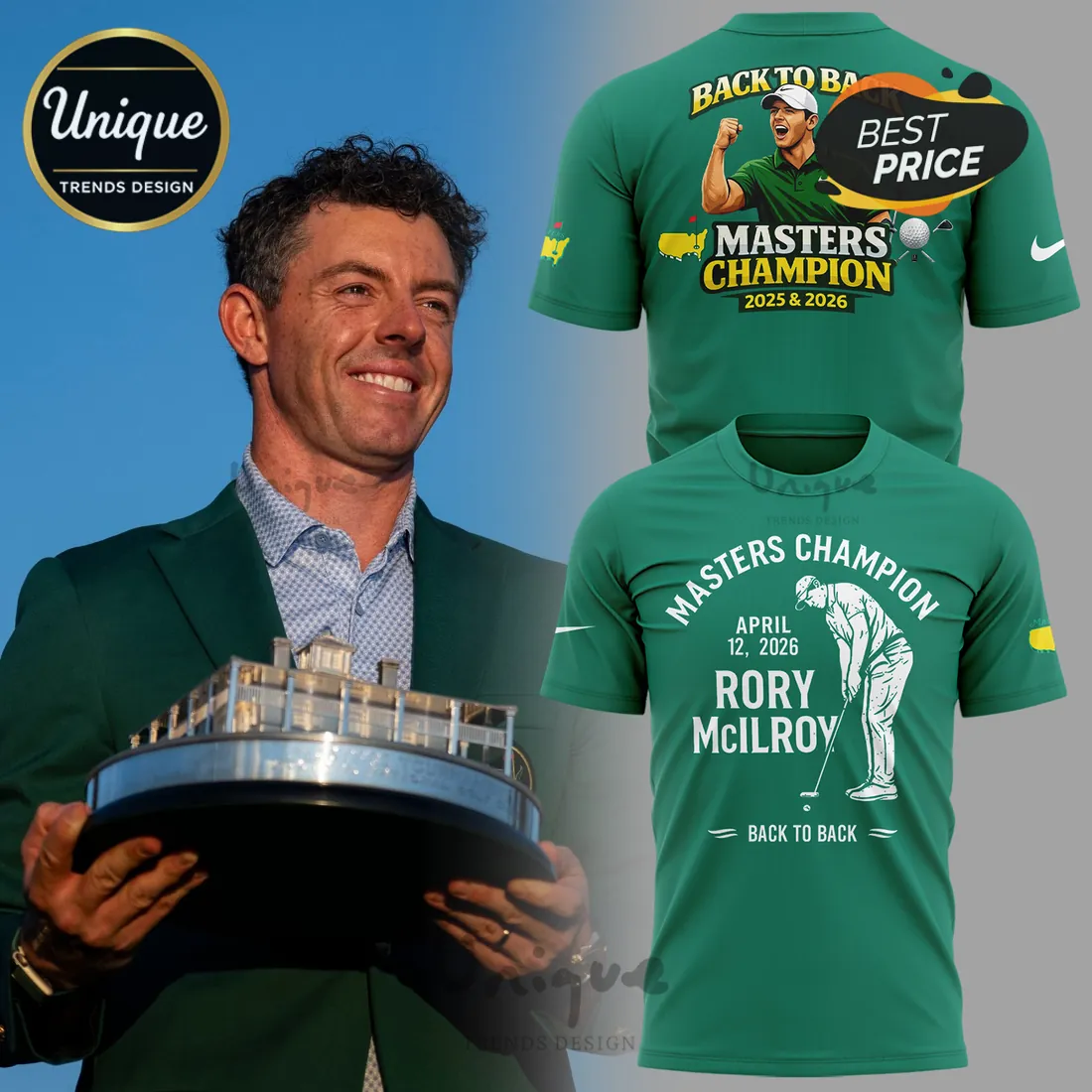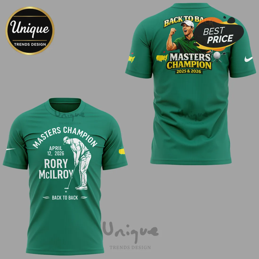 Rory McIlroy Back To Back Masters Champion 2025 & 2026 Commemorative Golf T-Shirt Details