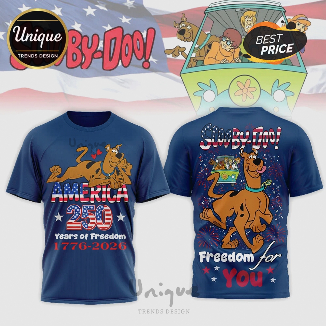 Get ready for the biggest celebration! This Scooby Doo America 250th Anniversary T-shirt is for every fan hyped to honor history with their favorite mystery gang. Perfect for patriotic events or watch parties!