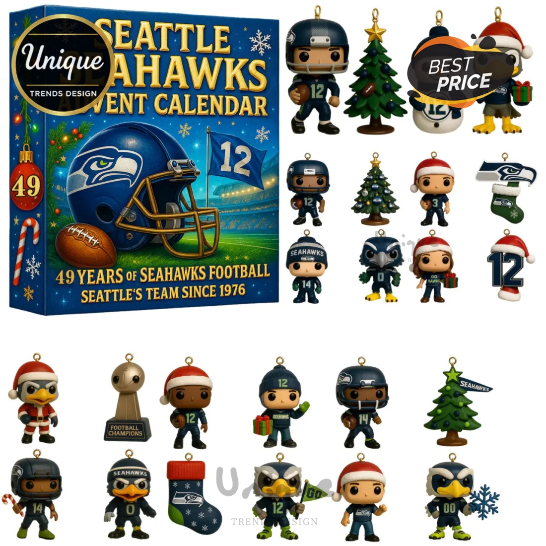 This Seattle Seahawks 2025 Advent Calendar offers an unparalleled way for devoted fans to infuse their holiday season with genuine team spirit, providing a daily dose of anticipation and exclusive collectibles leading up to Christmas. Designed with the true 12th Man in mind, this meticulously crafted calendar serves not just as a countdown, but as a vibrant celebration of one’s allegiance to the Pacific Northwest’s beloved NFL franchise. The exterior itself is a masterpiece of fan engagement, boasting the iconic navy, action green, and silver colors, emblazoned with the powerful Seahawks logo and perhaps subtle imagery of Lumen Field under game day lights, immediately signaling its authenticity and premium quality. Each of its 24 or 25 numbered doors, designed to be easily opened, conceals a unique, officially licensed item, ensuring that every morning in December brings a new and exciting surprise that deepens the connection to the team.